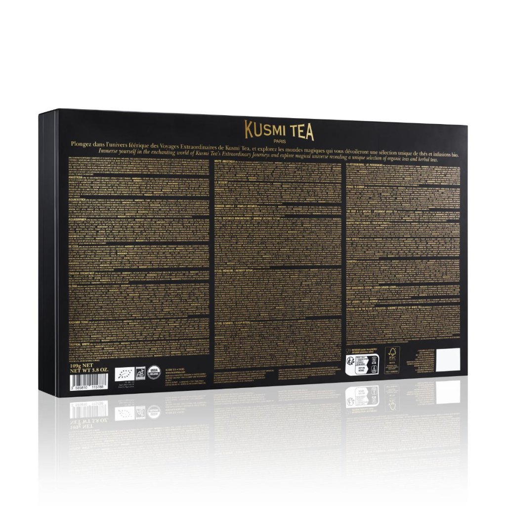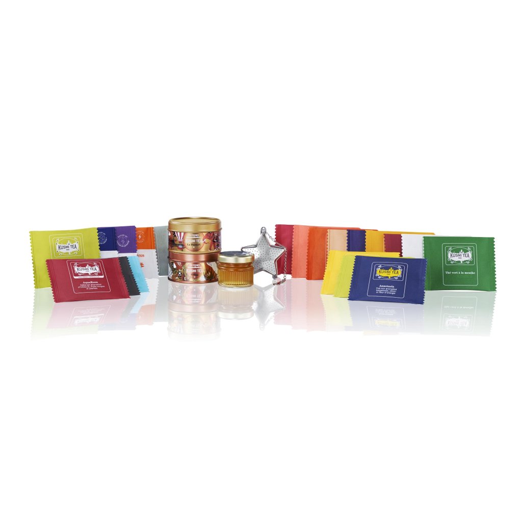 - Koledar je odlično darilo za družino in prijatelje, saj združuje čarobnost adventnega čakanja z odkrivanjem novih okusov ekoloških čajev Kusmi Tea.