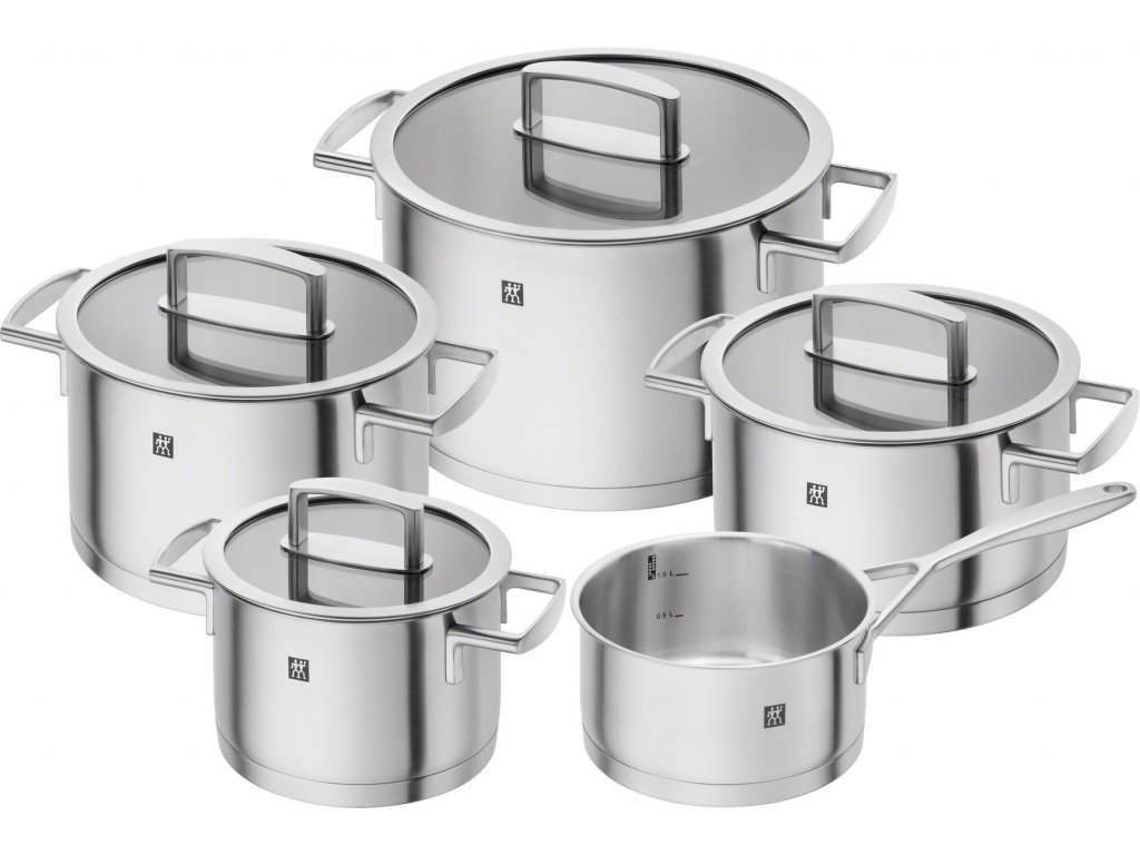 Sodobna in sveža posoda serije ZWILLING® Vitality v praktičnem kompletu ni primerna le za kuharje začetnike. Vrhunska kakovost nemškega proizvajalca je privlačna tudi za tiste, ki iščejo bolj profesionalno posodo. Učinkovita toplotna prevodnost in popolnoma tesnilni stekleni ploščati pokrov varčujeta z energijo in časom. Zaradi prozornosti pokrova imate popoln nadzor nad celotnim postopkom kuhanja. Prefinjen satenast zaključek je zelo privlačen, zato lahko to čudovito posodo brez težav uporabljate tudi pri serviranju.