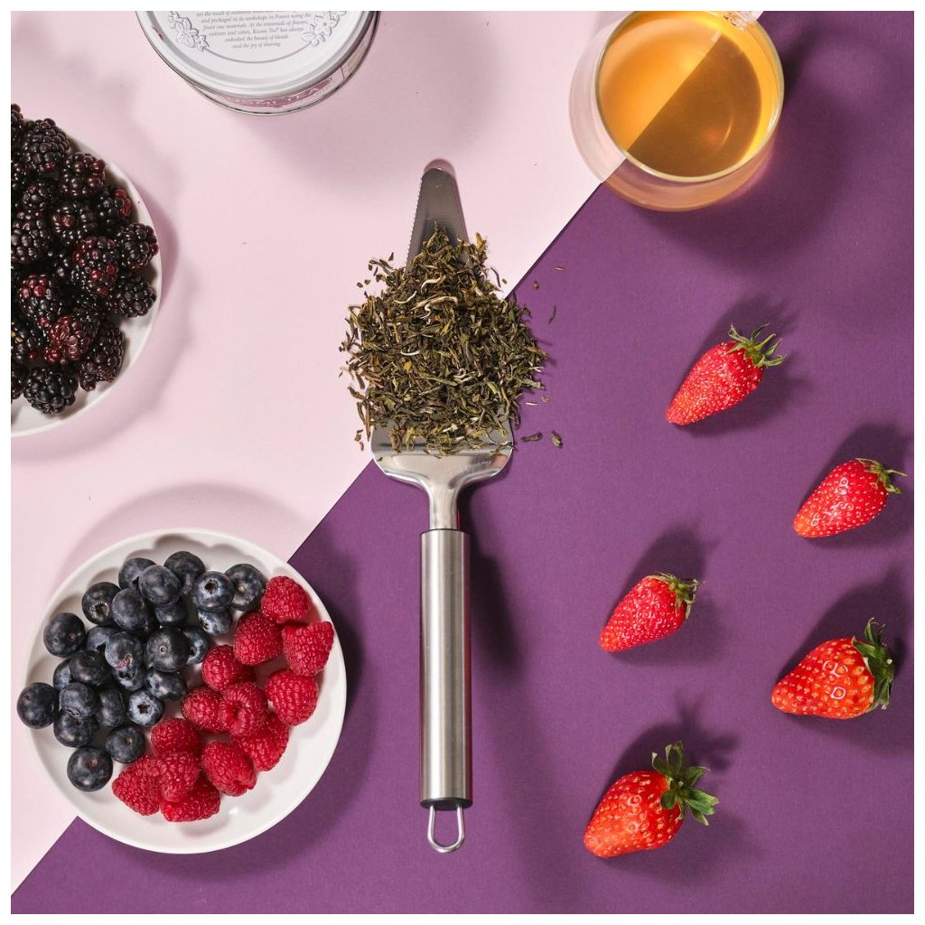 - sestavine: beli čaj* (57 %), zeleni čaj* (37 %), naravna aroma gozdnih sadežev (6 %) *ekološko pridelane sestavine