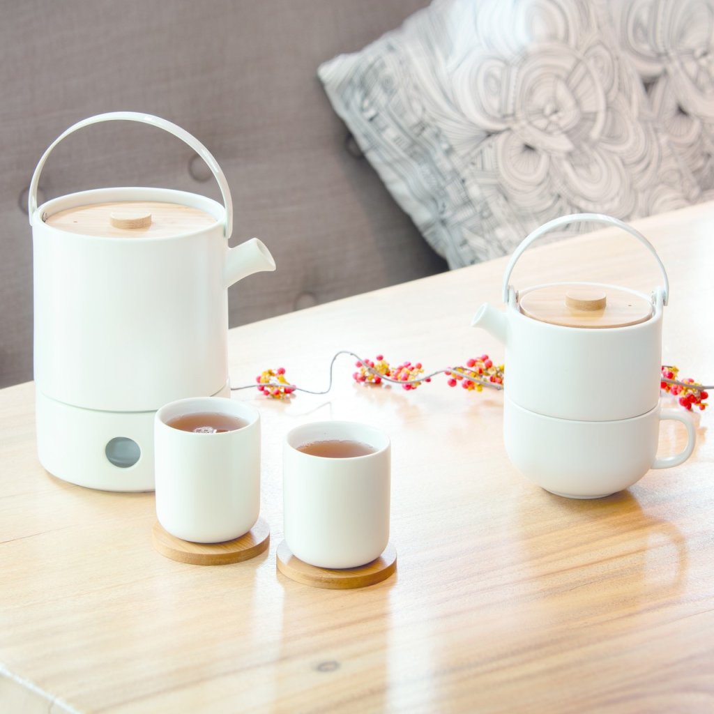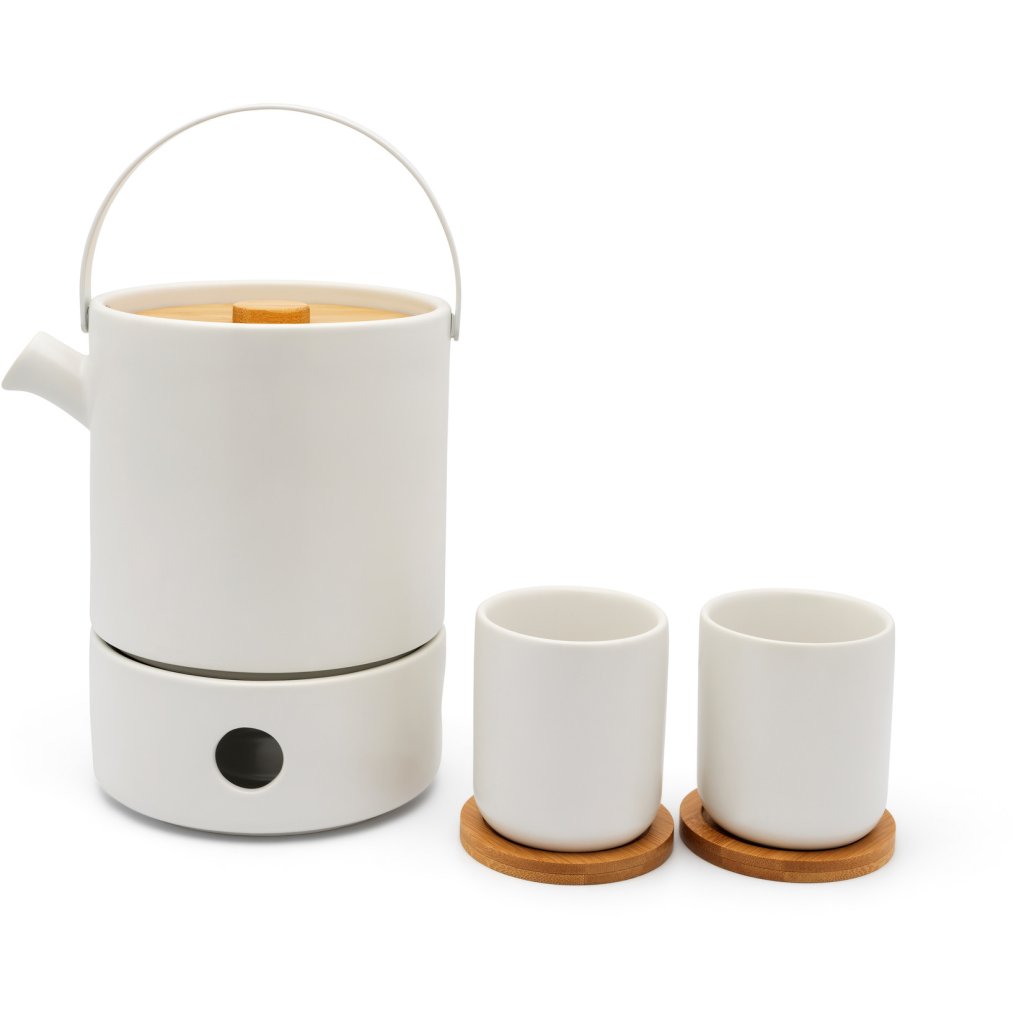 Čajnik z infuzorjem čaja UMEA, 1,2 l, z grelnikom, bela, keramika, Bredemeijer