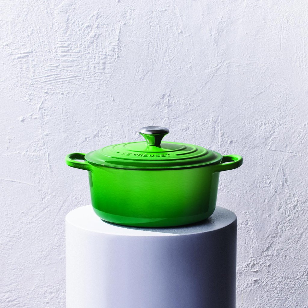 - Ikonična litoželezna plošča casserole kozica Le Creuset v barvi BAMBOO je kulinarična klasika, ki že več kot stoletje bogati kuhinje po vsem svetu.