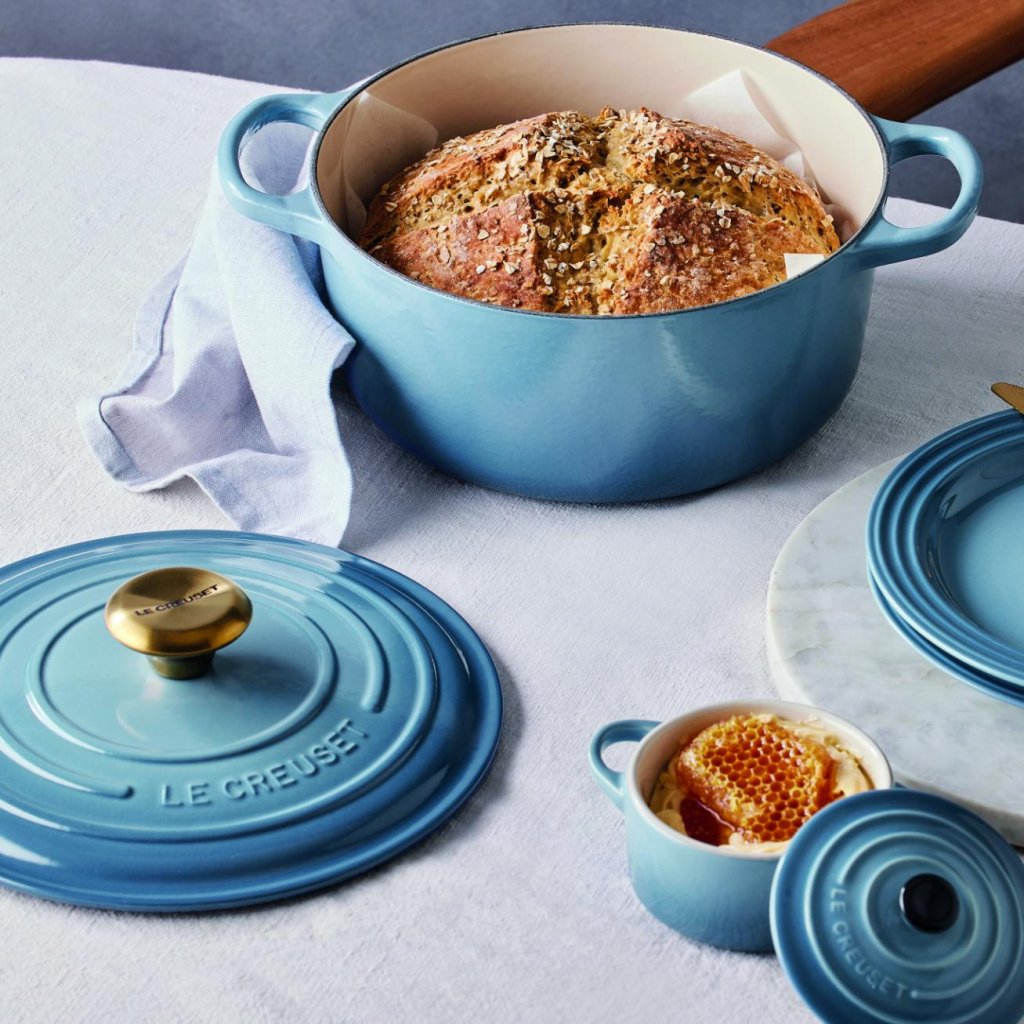 - Ikonična litoželezna plošča casserole kozica Le Creuset v barvi CHAMBRAY je kulinarična klasika, ki že več kot stoletje bogati kuhinje po vsem svetu.
