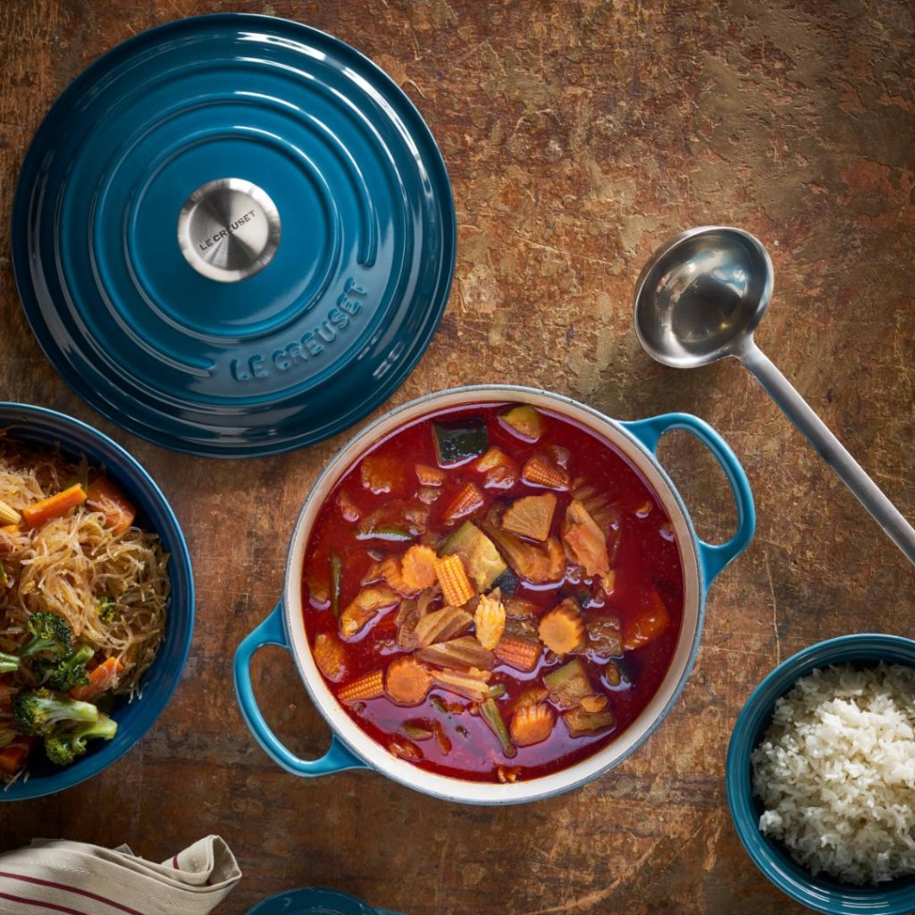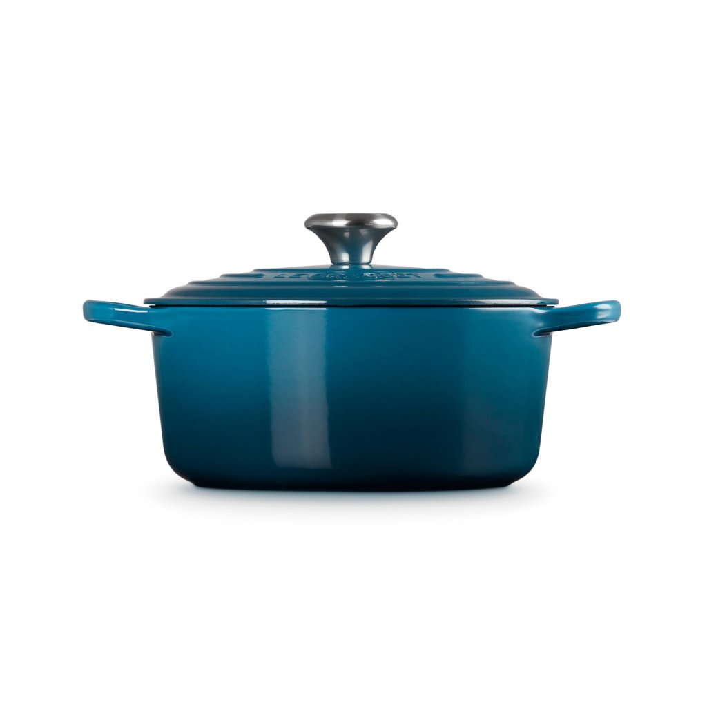 Pravijo, da pravega kuharja prepoznaš po njegovih nožih. Nesmisel. Vidimo lahko, da ima lonec za kuhanje, ki tehta več kot njegov pes, pa vendar ga razvaja kot najdragocenejšega porcelan. V tej lepotici v senci DEEP TEAL je celo navaden krompir tako dober, da bi po vsakem grižljaju pričakovali aplavz.