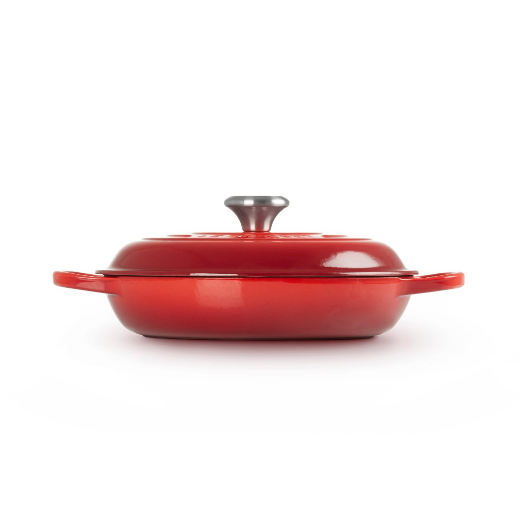- Ploščata litoželezna ponev casserole kozica Le Creuset v barvi CERISE je izdelana v Franciji in je eden od legendarnih kosov te blagovne znamke, idealen za dušenje, cvrtje, peko in pečenje za 2-4 osebe.
