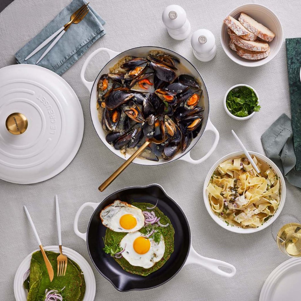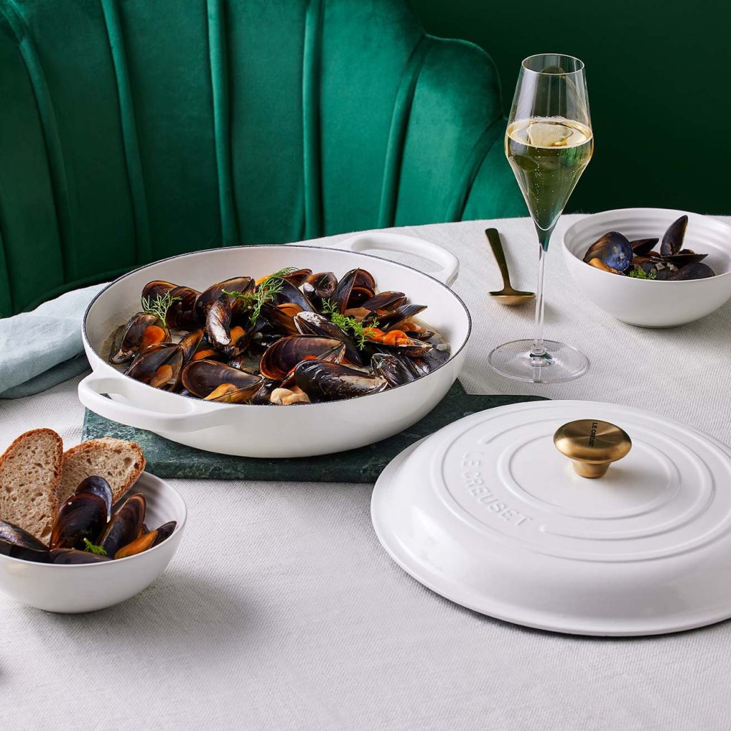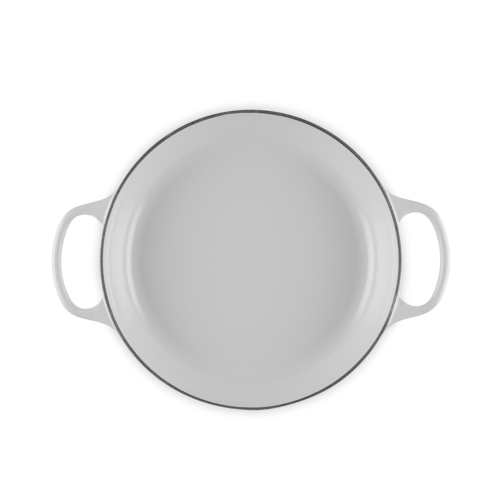 - Ploščata litoželezna ponev casserole kozica Le Creuset v barvi WHITE je izdelana v Franciji in je eden od legendarnih kosov te blagovne znamke, idealen za dušenje, cvrtje, peko in pečenje za 2-4 osebe.
