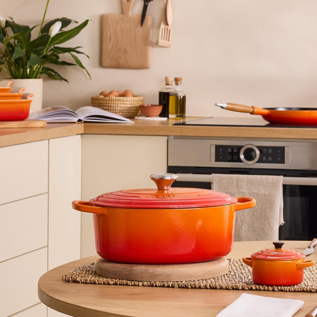 - Ovalna litoželezna pečica casserole kozica Le Creuset v barvi FLAME je univerzalni kuhinjski pomočnik, ki je dovolj prostorna za peko cele jagnječje stegna in hkrati dovolj ozka, da v pečici ostane prostor za priloge.