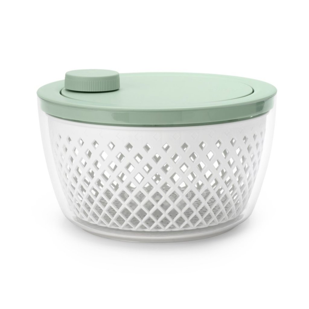 - centrifuga za solato Brabantia TASTY+ v žadasto zeleni barvi združuje funkcije sklede, cedila in sušilnika v enem praktičnem orodju