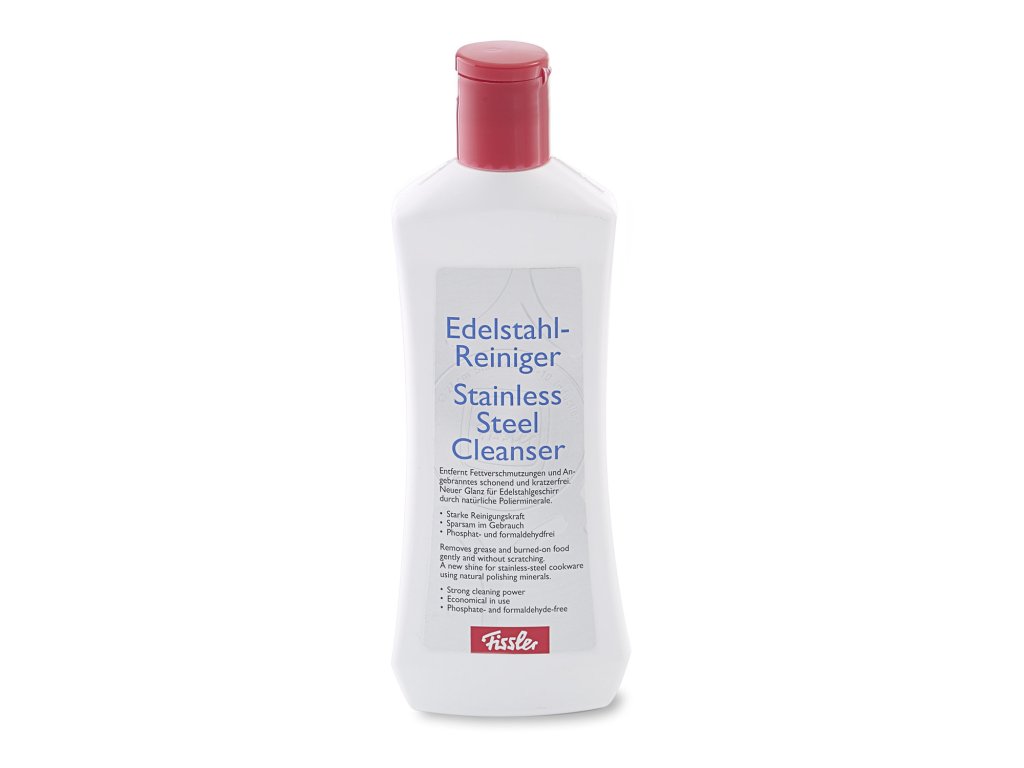 Čistilo za nerjaveče jeklo Fissler zlahka in brez prask odstrani zažgano umazanijo in maščobo. Če želite, da bo vaša posoda dolgo služila, jo morate negovati. Kuhinjska posoda Fissler je izdelana iz nerjavečega jekla 18/10 in jo je zelo enostavno čistiti. Včasih pa se lahko zgodi, da se hrana zažge in ostanki hrane prilepijo na površino - čistilo za nerjaveče jeklo je priročna in enostavna rešitev. Uporabite ga lahko tudi za čiščenje kuhalne plošče ali za odstranjevanje ostankov usedlin z izlivov. Izdelek je zmogljiv in okolju prijazen.