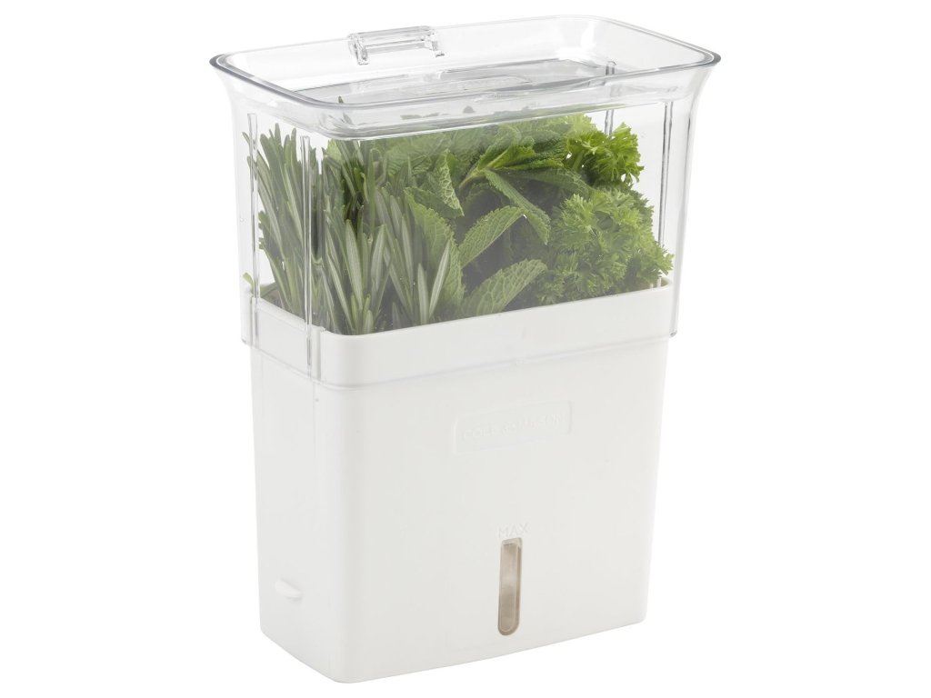 - Shranjevanje zelišč cvetlični lonček podjetja Cole & Mason podaljša svežino narezanih zelišč za do 10 dni v primerjavi s konvencionalnim shranjevanjem.