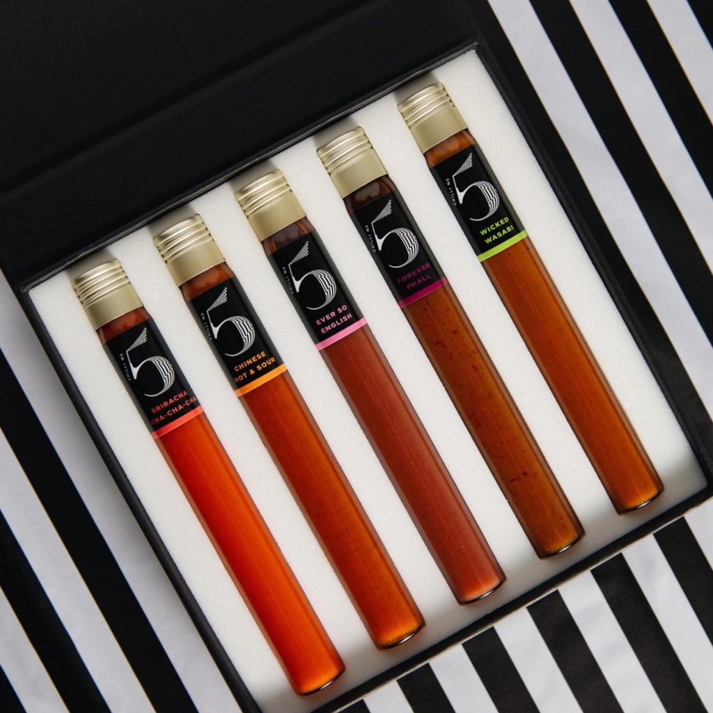 - Vsebuje izbor petih najbolj priljubljenih omak te blagovne znamke: Sriracha Cha-Cha-Cha, Chinese Hot & Sour, Wicked Wasabi, Ever So English in Forever Phall.