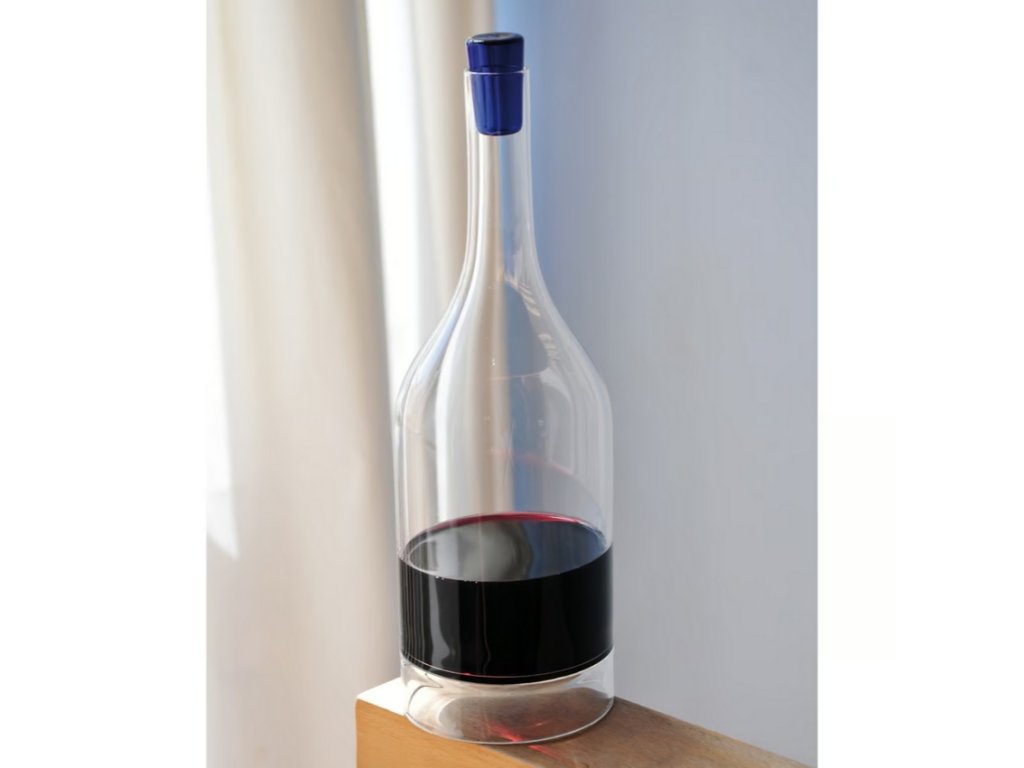- stekleni zamašek v modri barvi ščiti vino pred prahom