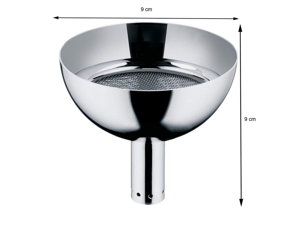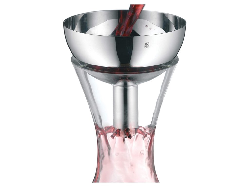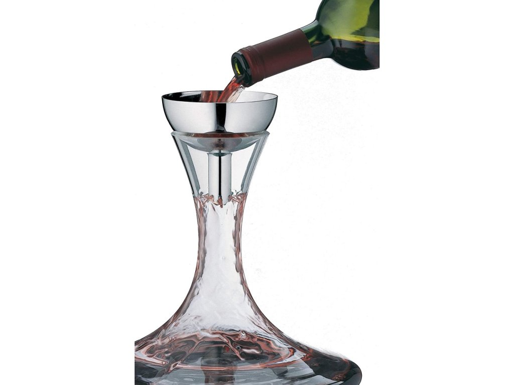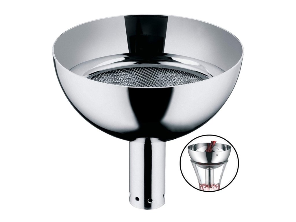 Ta lijak za dekanter Vino iz poliranega kromargana® (nerjavno jeklo 18/10) ni le plemenitega videza, ampak tudi izboljša vaše vino. Vgrajeno cedilo ujame ostanke plute, ki nastanejo pri nalivanju v dekanter. Drobne luknjice na koncu lijaka razporedijo dekantirano vino po celotni širini dekanterja. S tem postopkom dekantirano vino dobi veliko zraka, ki je potreben za razvoj njegovega značilnega šopka.
