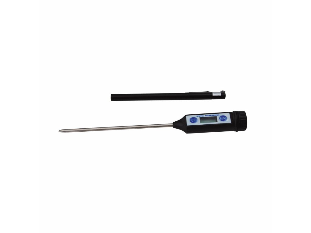 Natančen digitalni termometer za preverjanje temperature mesa med kuhanjem. Takojšen prikaz temperature od -50 °C do +200 °C. 12 cm dolga sonda iz nerjavnega jekla zagotavlja enostavno prodiranje v meso. Ni primeren za pečico ali pomivalni stroj.