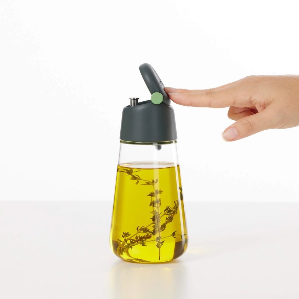 Poznate trenutek, ko želite solato le rahlo poškropiti, na koncu pa se vam nabere toliko olja, da bi lahko zgradili pomol? S to stekleničko za doziranje imate v roki tako zavoro kot plin, zato lahko le enkrat potegnete lističe in drugič ravnate s posodo brez živcev.