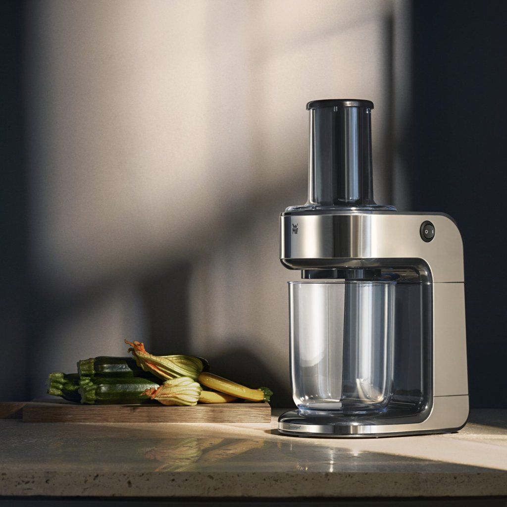 Električni spiralizator KULT X nemške premium blagovne znamke WMF zaradi paketa dodatne opreme ponuja številne možnosti za vegansko in vegetarijansko kuhinjo. Spiralizator je idealen za hitro pripravo zelenjavnih testenin in svežih solat ali okusnih prilog k ribam in mesu. Sadje je čudovita in predvsem okusna sladica. Vse to z dotikom gumba.