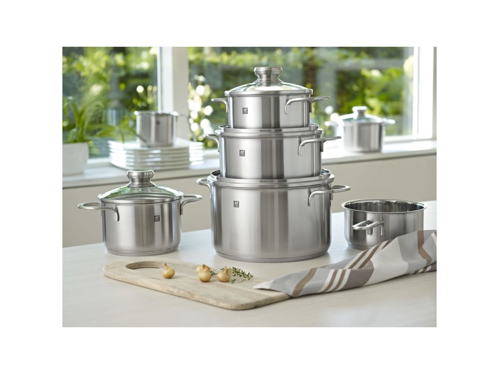 Serija TWIN® Nova je zasnovana v preprostem, klasičnem slogu, ki je primeren za večino kuhinj. Uživali boste v kuhanju s tako kakovostno, vsestransko in zelo funkcionalno posodo. Lonci imajo svetlečo, satenasto gladko površino, značilno za lonce ZWILLING J. A. Henckels. Okrogla posoda je preprosta in vsestranska ter je popoln partner za sodobno in zdravo kuhanje.