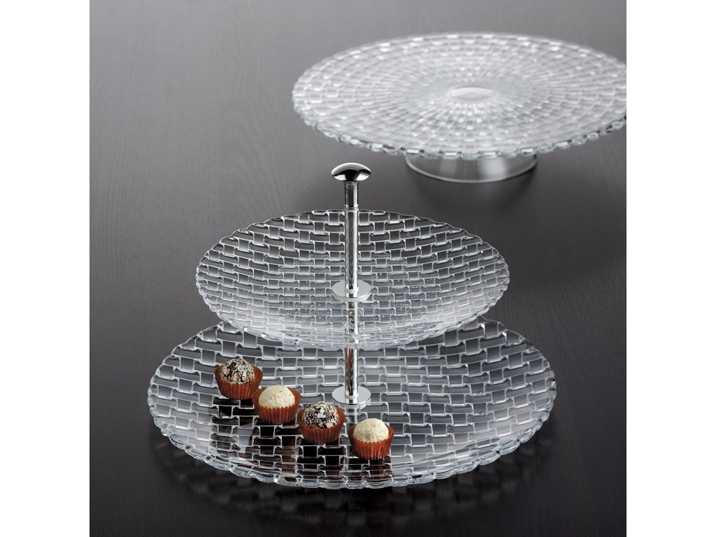 Veliki okrogli dvonadstropni etažirnik iz kolekcije Bossa Nova vas bo prepričal že ob prvem dotiku. Serija ponuja kristalno namizno posodo in dodatke, ki so tako zapeljivi in očarljivi za čute kot glasba in ples bossa nove. Čiste oblike posameznih kosov stekla poživlja reliefni pleteni vzorec, ki vabi prste, da se jih dotaknejo. V kolekciji Bossa Nova nemškega proizvajalca Nachtmann se skriva čar, ki vas podzavestno spodbuja, da s prijatelji ostanete za mizo malo dlje in uživate skupaj.