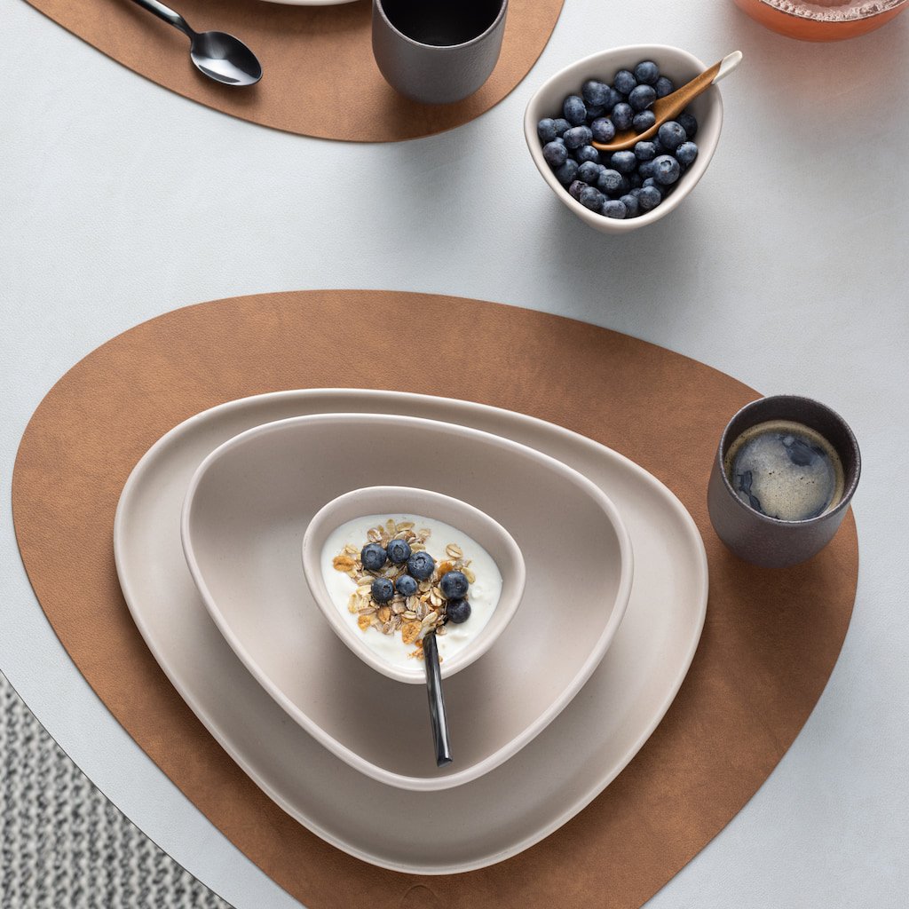 Globok krožnik KRIVLJINA 22 cm, pesek, kamnita posoda, LIND DNA