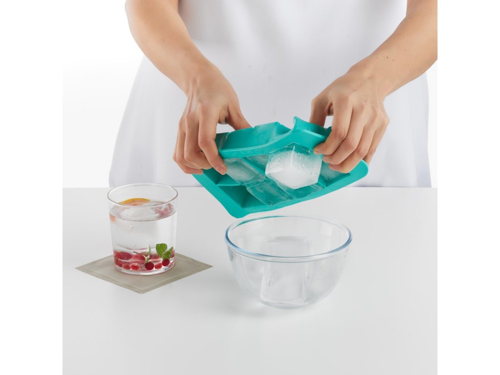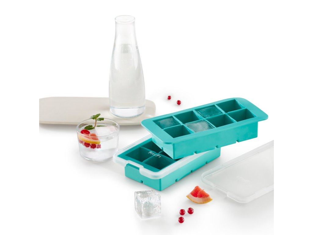- Model za led Lékué omogoča enostavno izdelavo osmih velikih kvadratnih ledenih kock velikosti 4,5 cm za dolgotrajno hlajenje pijač