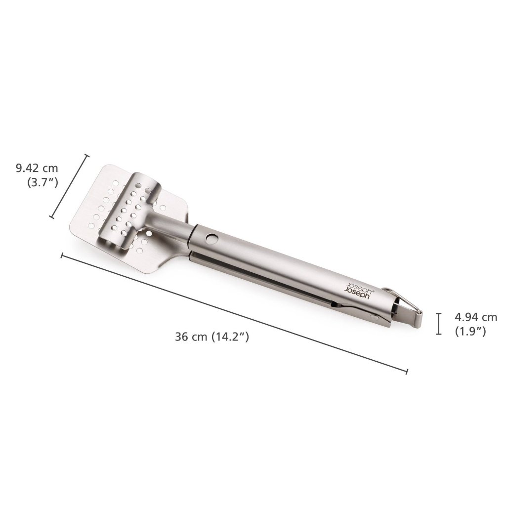 - Klešče za žar z obračalnikom Joseph Joseph GRILLOUT je praktično orodje 2 v 1 za enostavno prijemanje, dvigovanje in obračanje hrane med peko na žaru.