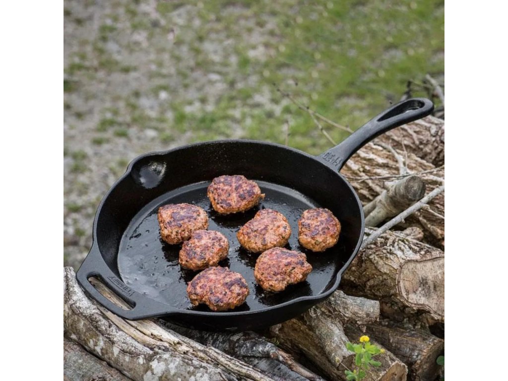 Če bi ponev lahko govorila, bi ta imela globok glas in rahlo divjaški naglas. Spominja se ognja, vonja po slanini in miru po nevihti. Litoželezne ponve Petromax niso samo za kuhanje – so za zgodbe. Vsaka praskica, vsak oljni odtis je majhna kronika časa, ko ti ni bilo mar za svet, ampak le za okus. In vedno je popolna.