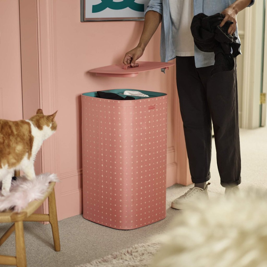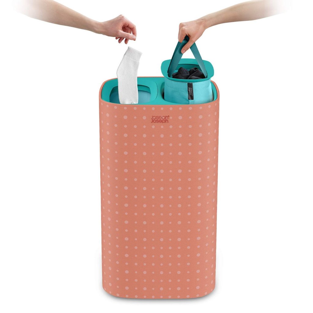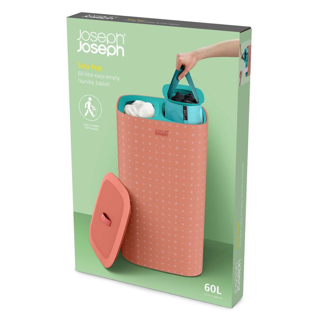 - Koš za perilo Joseph Joseph TOTA POP v koralni barvi je praktična in elegantna rešitev za pregledno razvrščanje perila v spalnici, kopalnici ali utilityju.