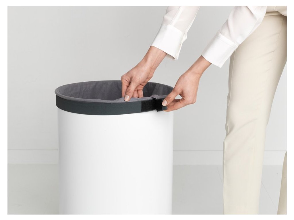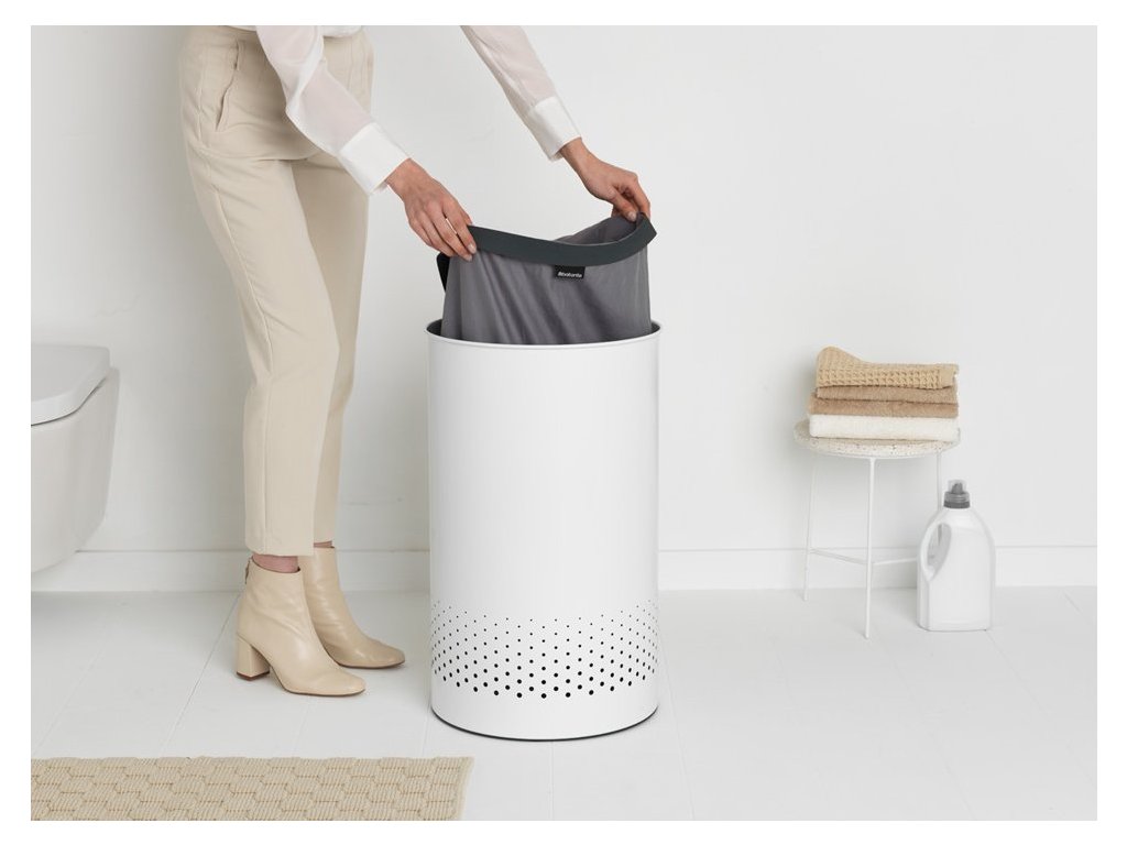Iščete praktično rešitev za shranjevanje perila v stanovanju ali družinski hiši? Koš za perilo Brabantia ima pametno odpiranje Quick-Drop, zato vam pokrova ni treba sneti ali odstraniti. Manjše kose lahko vstavite naravnost skozi pokrov, za večje pa samo odprite pokrov in ostanejo na robu košare. V notranjosti košare je bombažna vreča za perilo z velcro zapenjanjem, na spodnji strani pa je zaščitni obroč za pravo stabilnost.