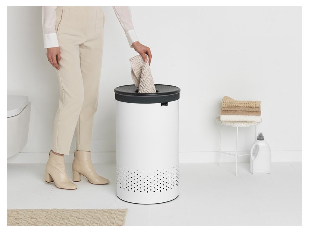 Koš za perilo, 60 l, s plastičnim pokrovom, bela, Brabantia
