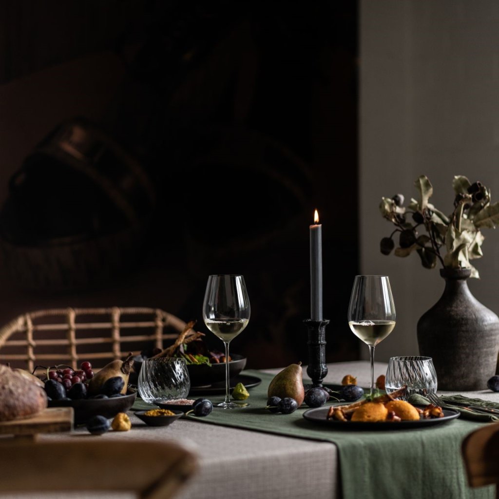 - elegantna oblika čaše se nežno zoži navzgor, kar omogoča, da se arome skoncentrirajo in da se poudari značaj vina