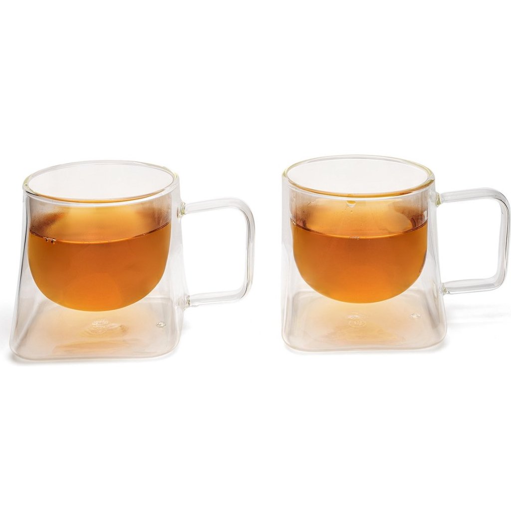 - oblika kozarcev zagotavlja prijeten oprijem in udobno pitje brez nevarnosti, da bi si opekli prste z vročim steklom