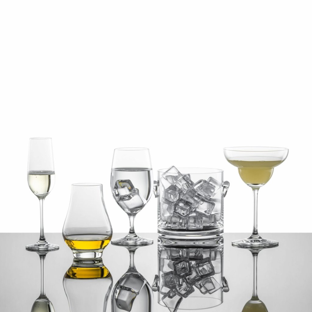 - kombinacija nežno ukrivljene silhuete in prozornega stekla ustvarja vizualno privlačen kontrast z barvo pijače