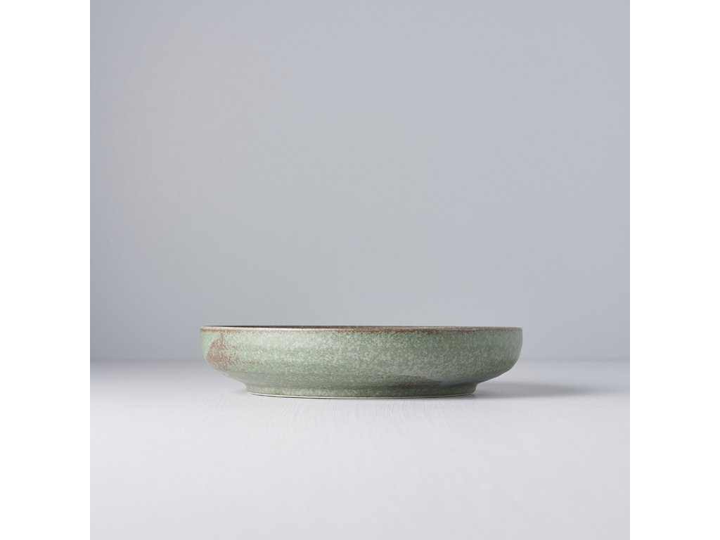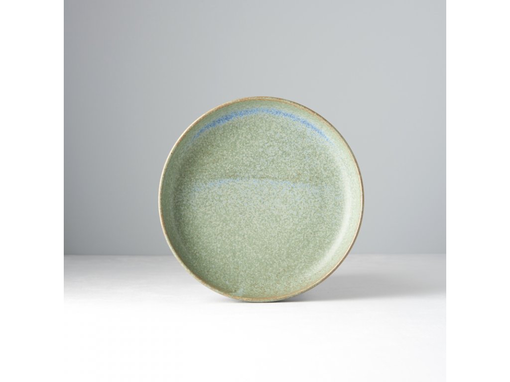 V tem paketu najdete izvirni plitki krožnik z visokim robom iz zbirke Fade s premerom 20 cm. Krožnik je zelene barve z modrimi in rjavimi odtenki ter nežnim dekorjem.