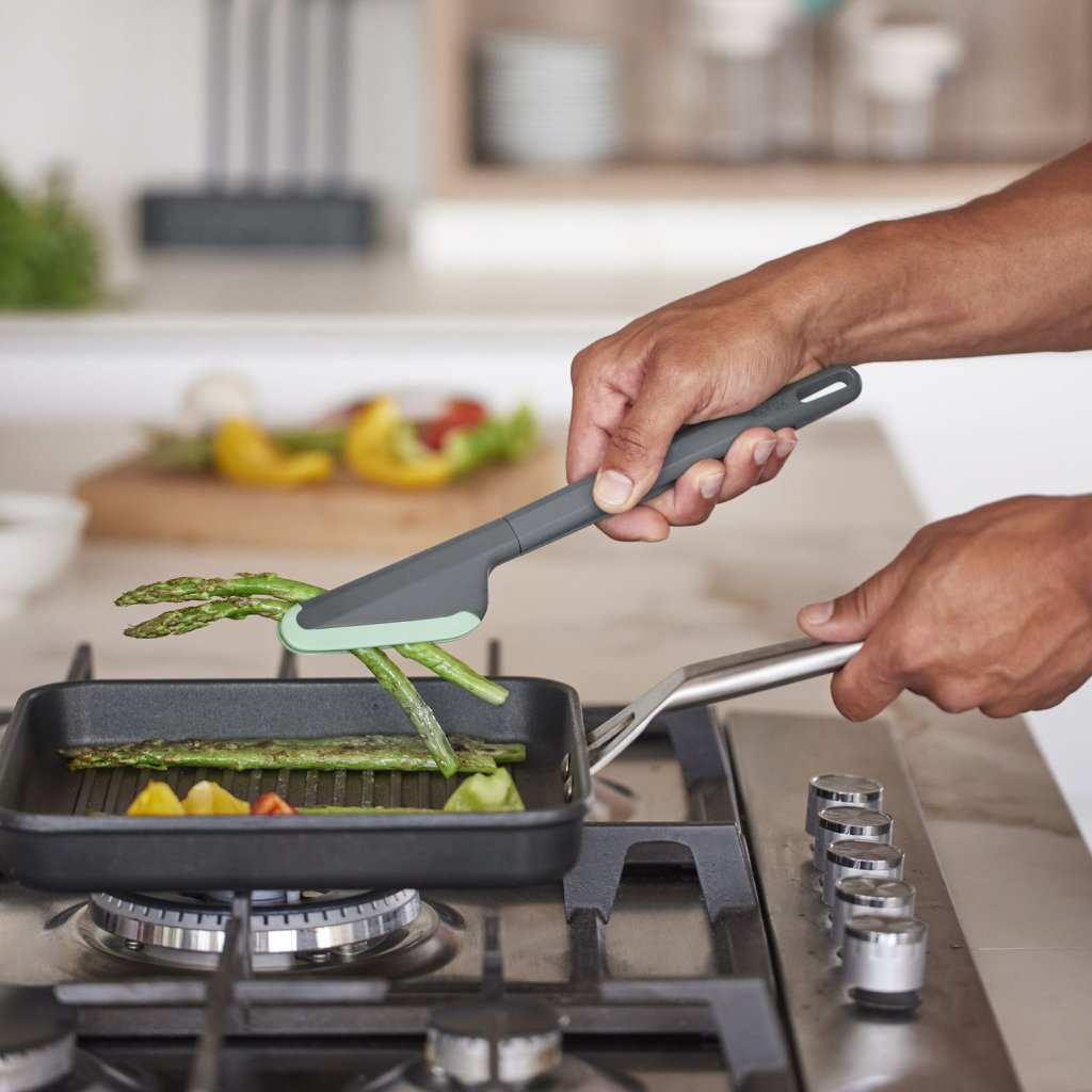 - Zaradi svoje oblike in dolžine lahko klešče uporabljate za natančno prijemanje ali za enostavno obračanje večjih kosov hrane.