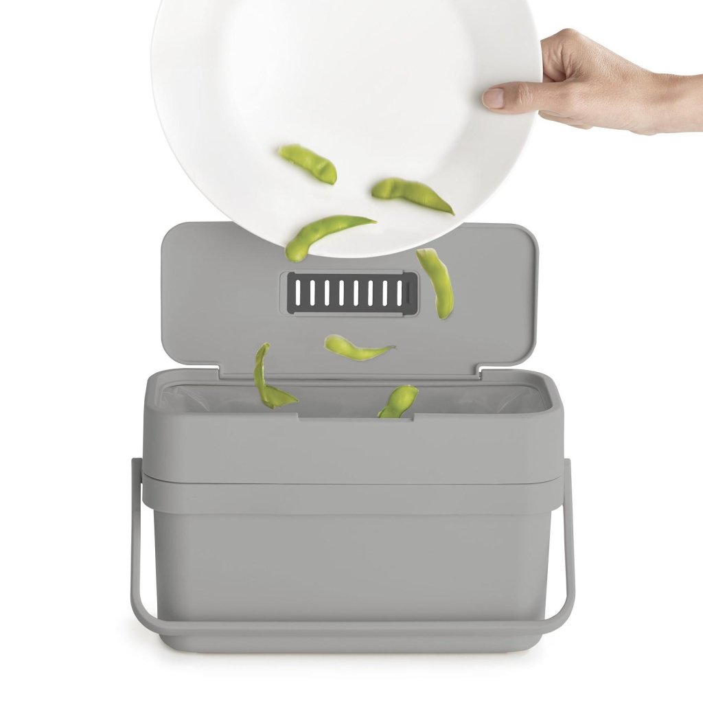- Posoda za kompostljive odpadke Joseph Joseph DUO s prostornino 4 litrov predstavlja praktično in higiensko rešitev za razvrščanje bioloških odpadkov neposredno v kuhinji.