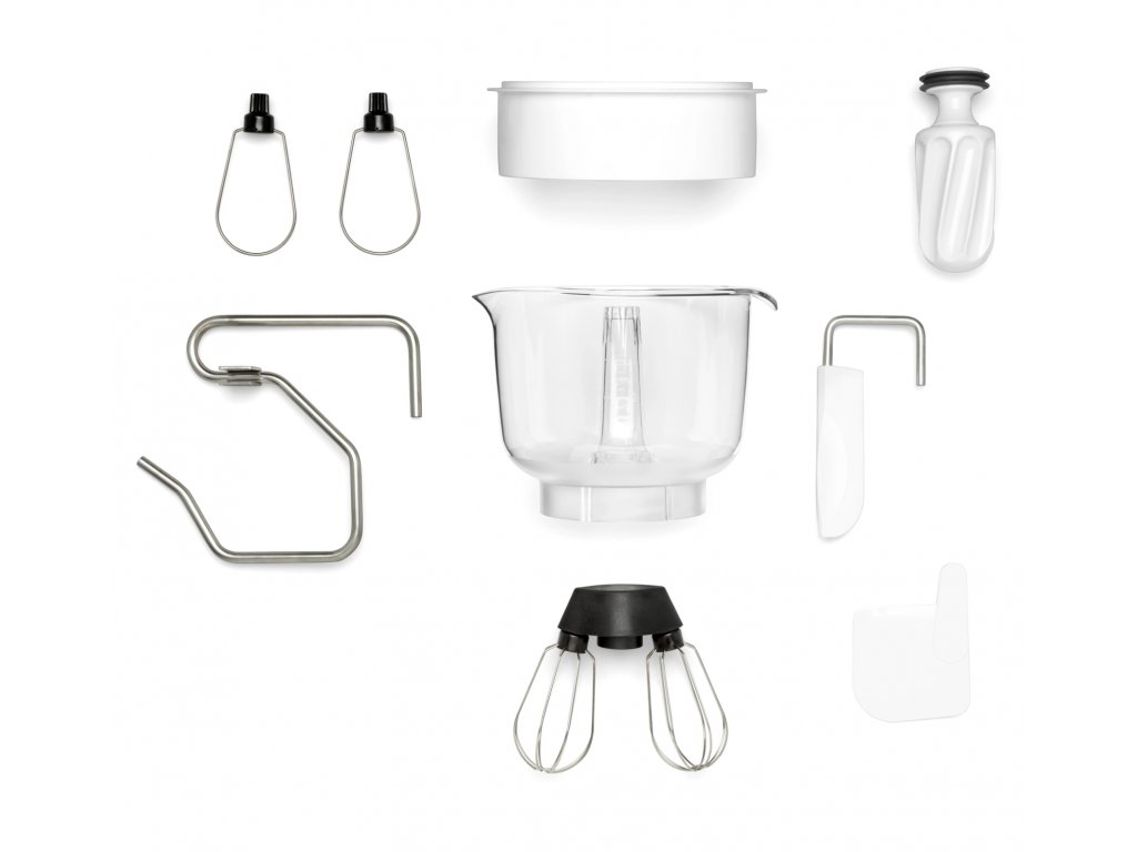 - dodatna oprema: nastavek za testenine, aparat za pripravo citrusov, mešalnik, mlinček za meso, sokovnik, strgalnik zelenjave, diski za testenine, mlinček za žita, aparat za izdelavo kosmičev, nastavek za piškote