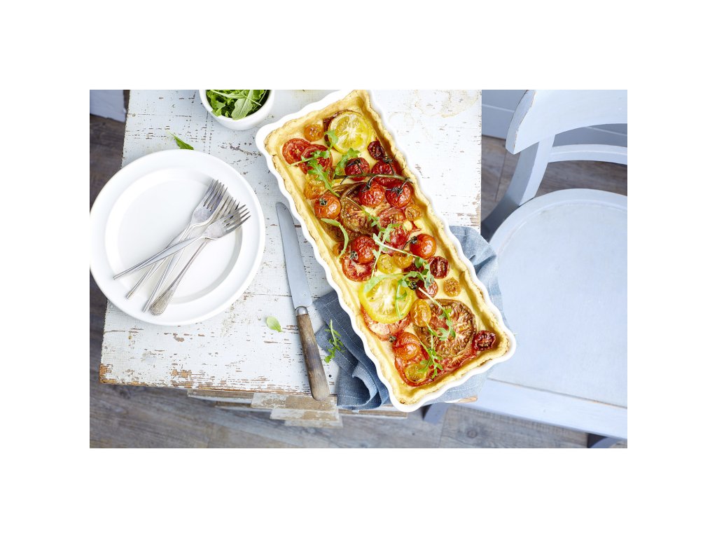 Preizkusite nekonvencionalne oblike za peko. Kvadratni pekač za torte je primeren za pripravo različnih vrst tort. Narejen je iz visokokakovostne keramike, ki enakomerno prevaja toploto. Kalup je zato primeren tudi za serviranje hrane, ki bo dolgo ostala topla. Zaobljen prehod med dnom in steno je idealen za serviranje brez ostankov.