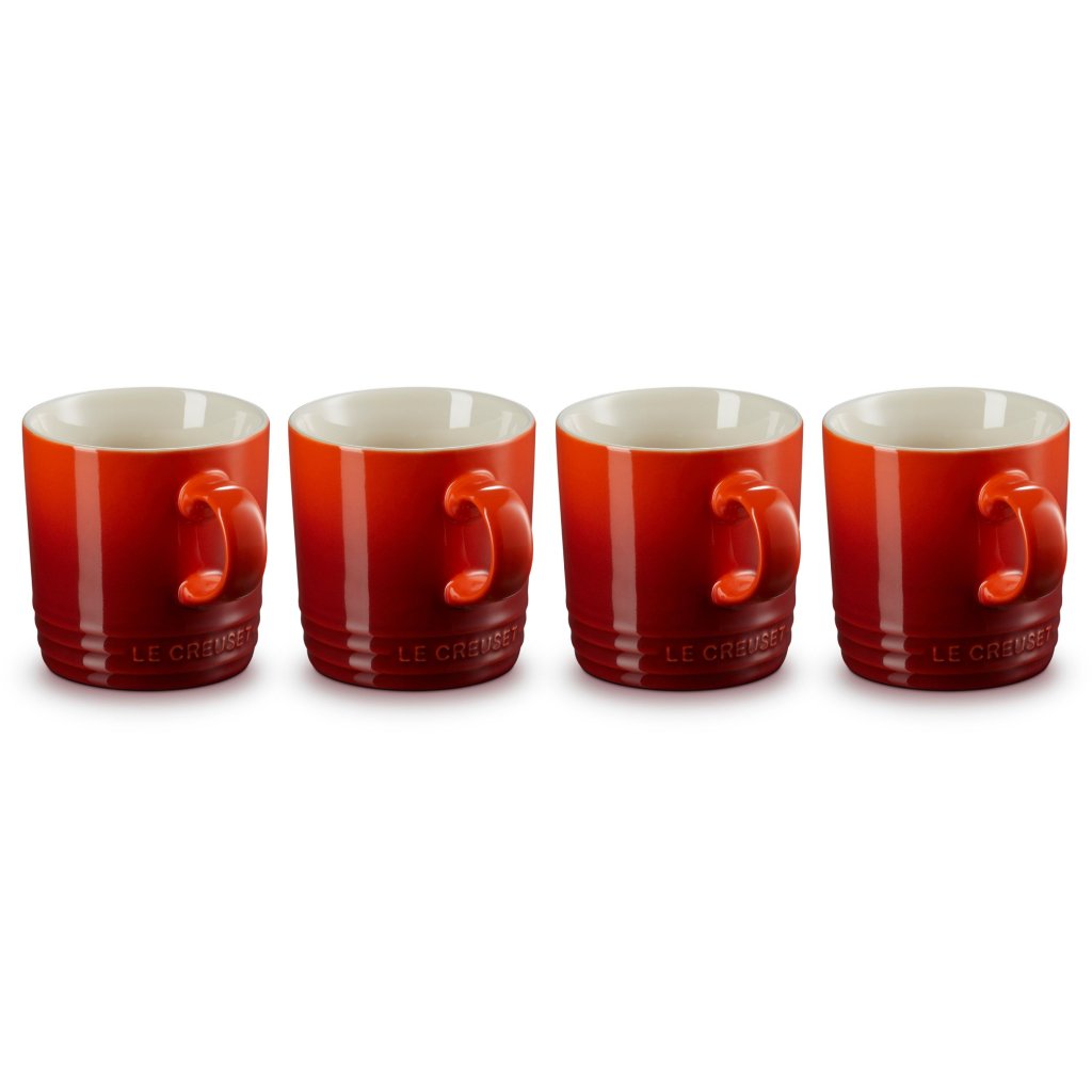 - Komplet 4 keramičnih skodelic Le Creuset v bogatem odtenku CERISE je brezčasna klasika, ki bo v vaš dom vnesla eleganco, toplino in ikoničen francoski slog.