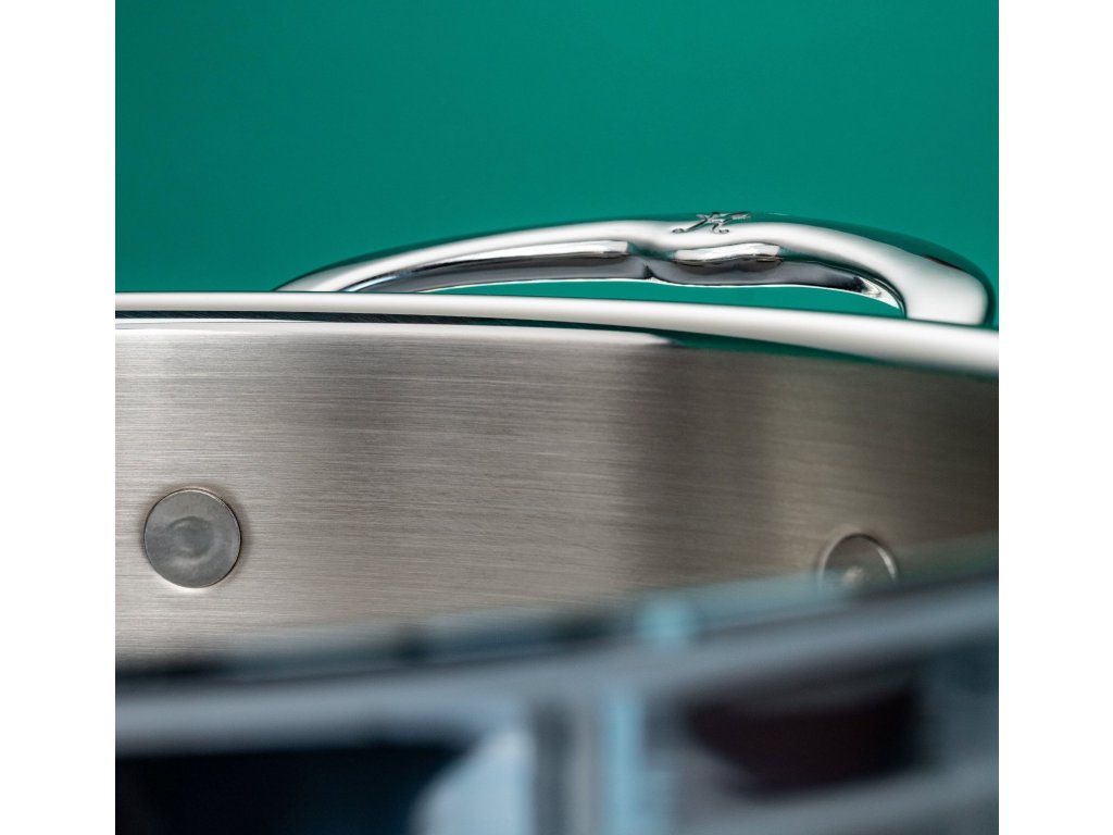 - ekskluzivna trojna osnova iz nerjavečega jekla z aluminijastim jedrom zagotavlja 35 % večjo toplotno prevodnost za hitrejše in enakomernejše segrevanje