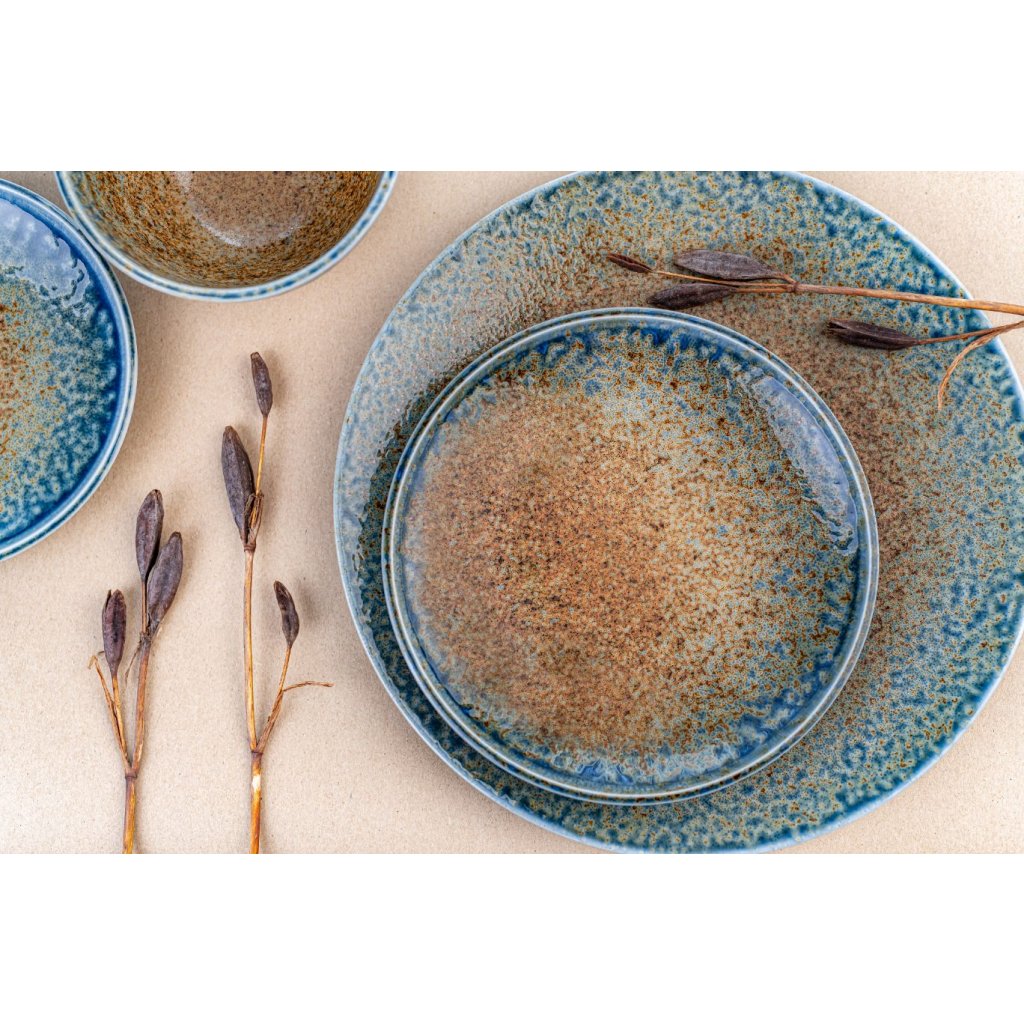 Zbirko namizne posode Earth & Sky so navdihnile barve zemlje in neba. Sredina posode je svetlo rjave barve, ki spominja na barve zemlje. Modra barva roba predstavlja nebo. Posode imajo fino zrnato površino.