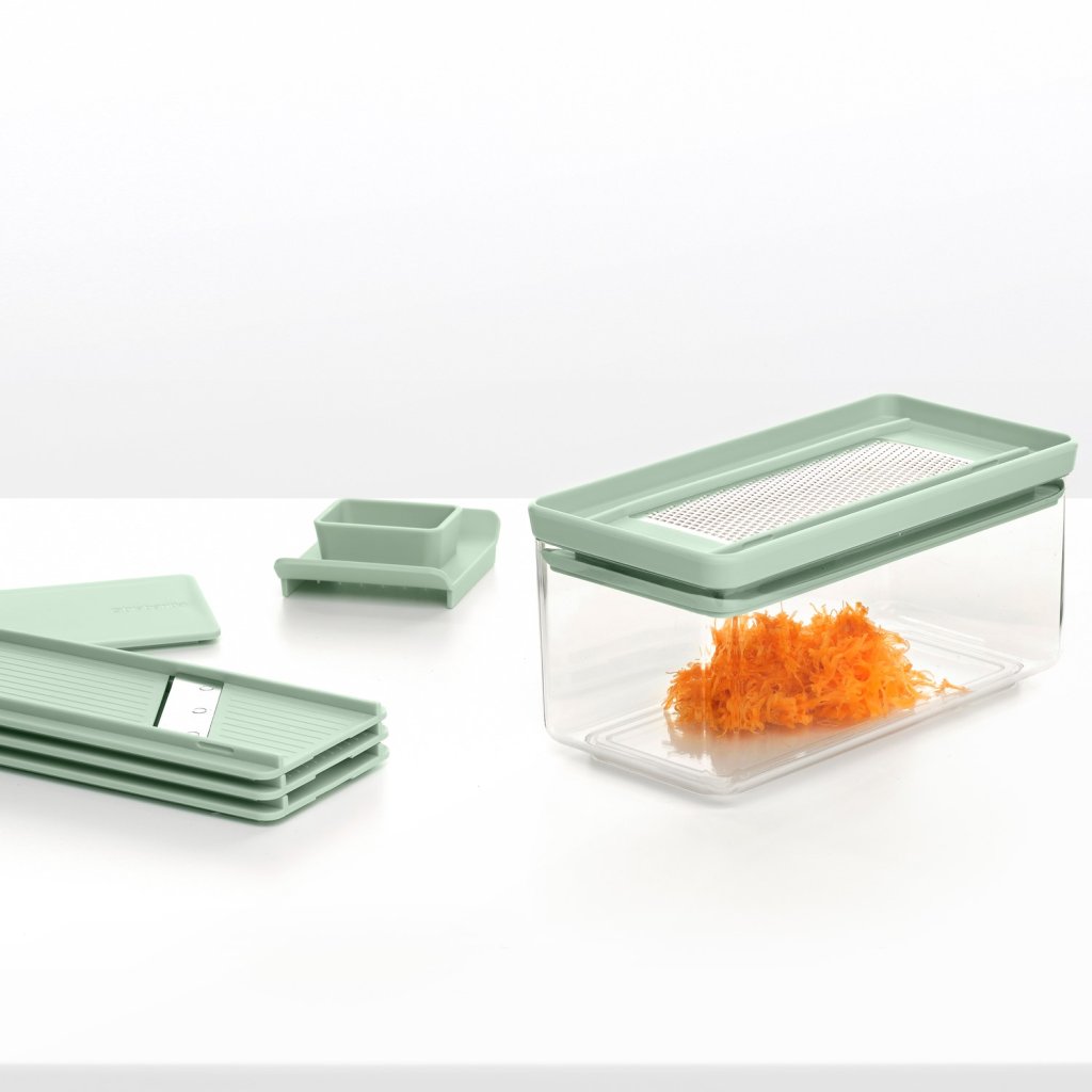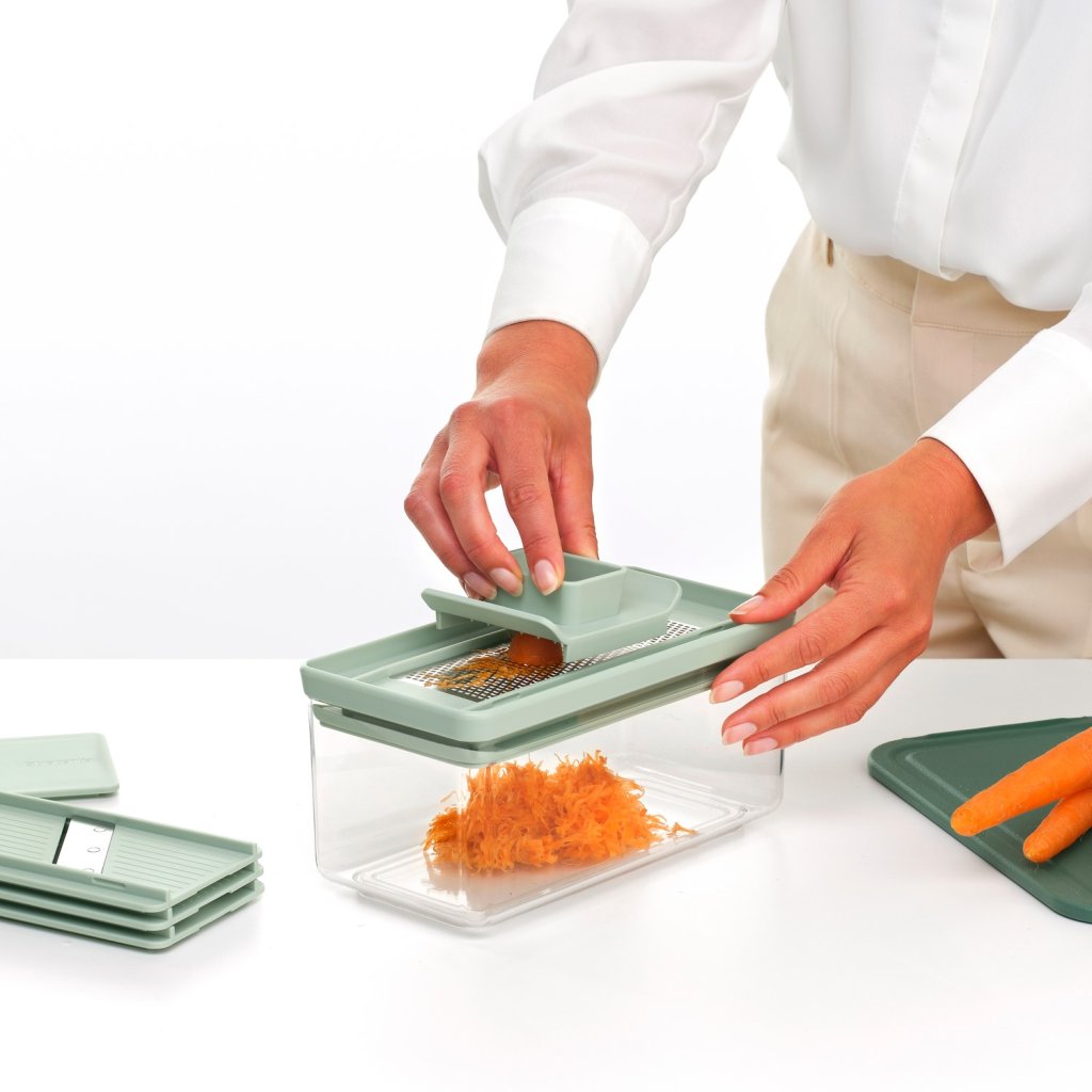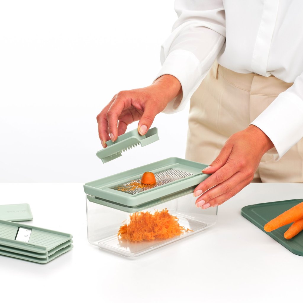 - mandoline rezalnik Brabantia TASTY+ ponuja praktično rešitev za rezanje in ribanje različnih vrst hrane v enem kompaktnem kompletu