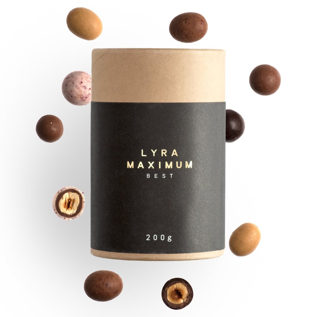 Mešanica oreščkov v nugatu in čokoladi MAXIMUM 200 g, LYRA