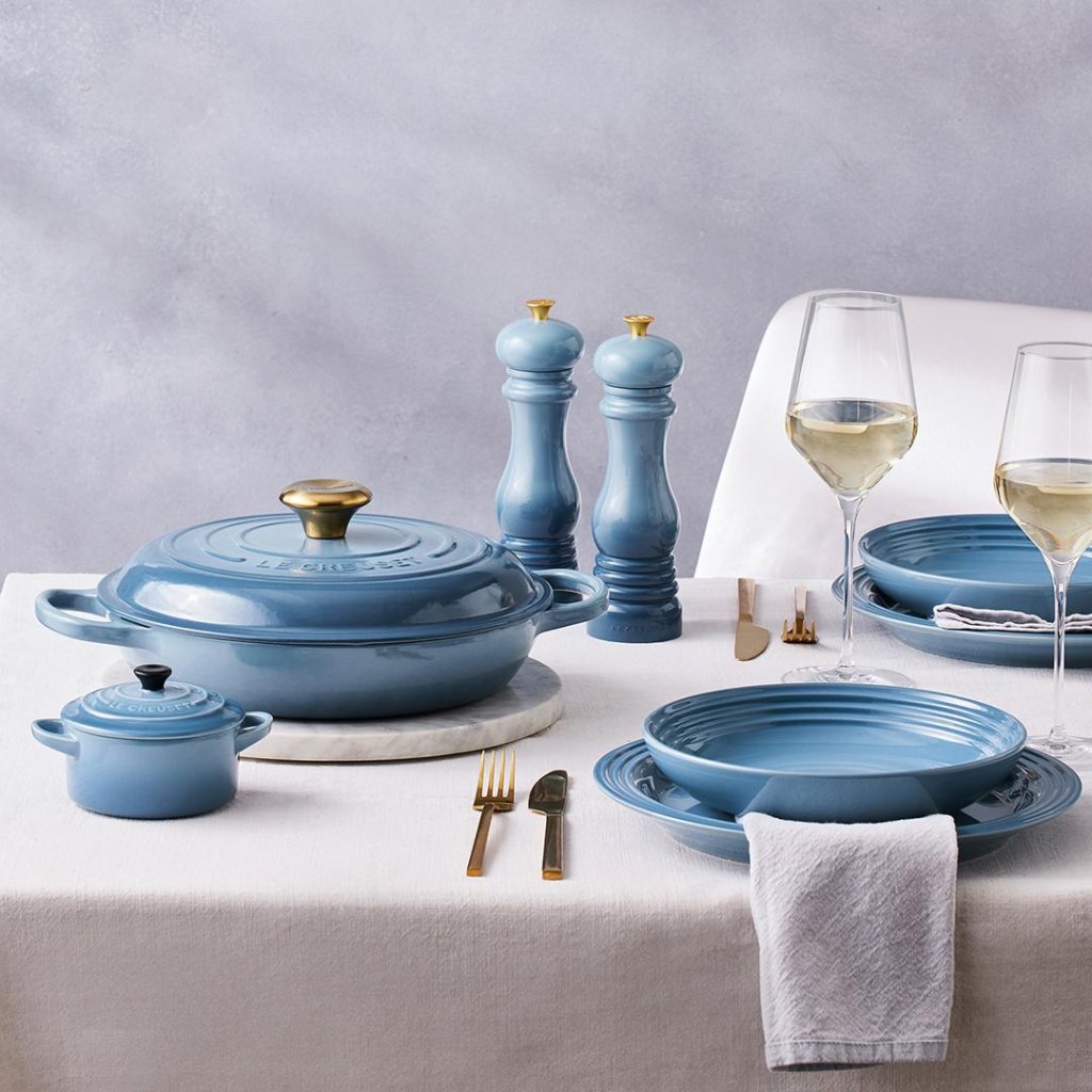 - Odtenek CHAMBRAY predstavlja elegantno kombinacijo tradicije in modernega sloga – njegov nežen pastelni ton bo vaši kuhinji dodal pridih lahkotnosti in čistosti ter se odlično poda k drugemu namiznemu priboru Le Creuset v istem odtenku.