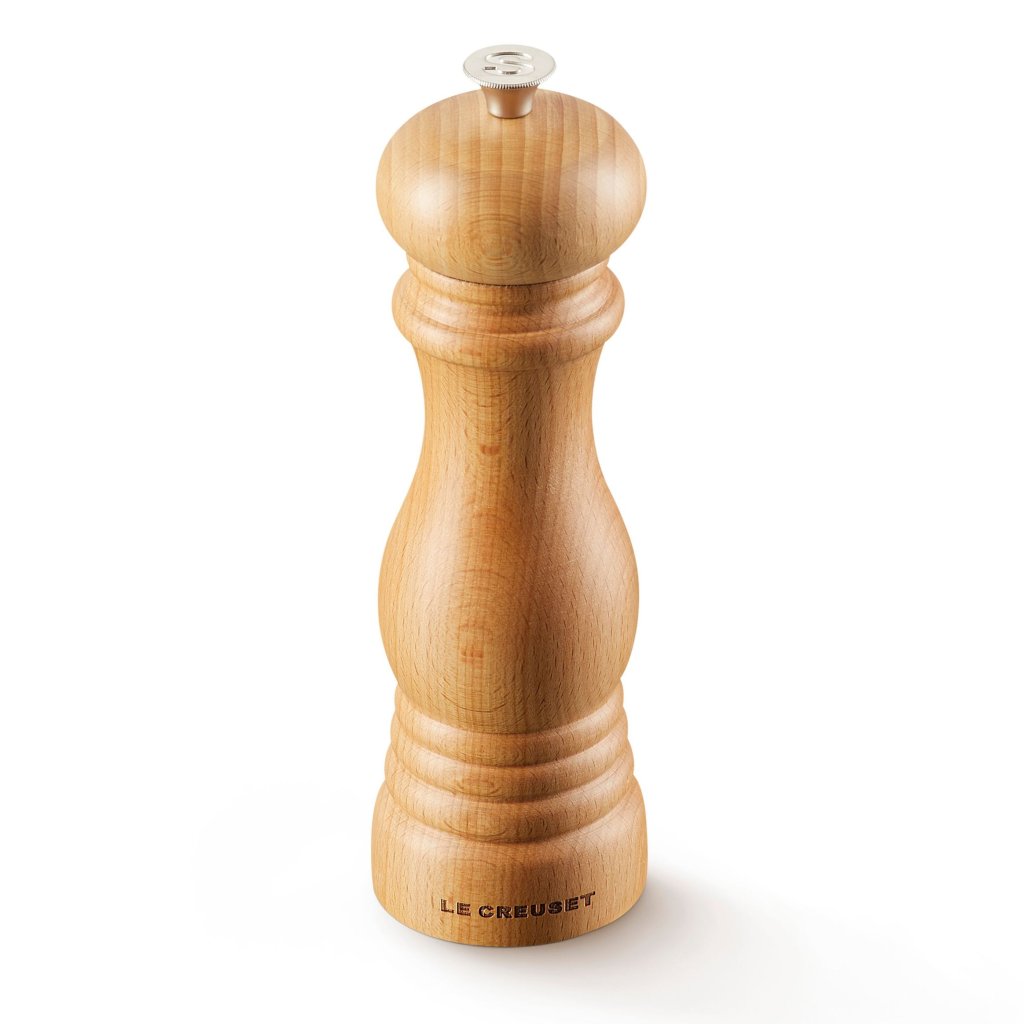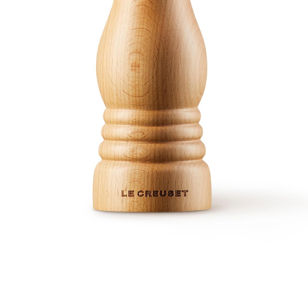 - Lesena mlinček za sol Le Creuset izstopa s svojim naravnim videzom bukovega lesa, ki vsaki kuhinji doda topel in eleganten pridih.