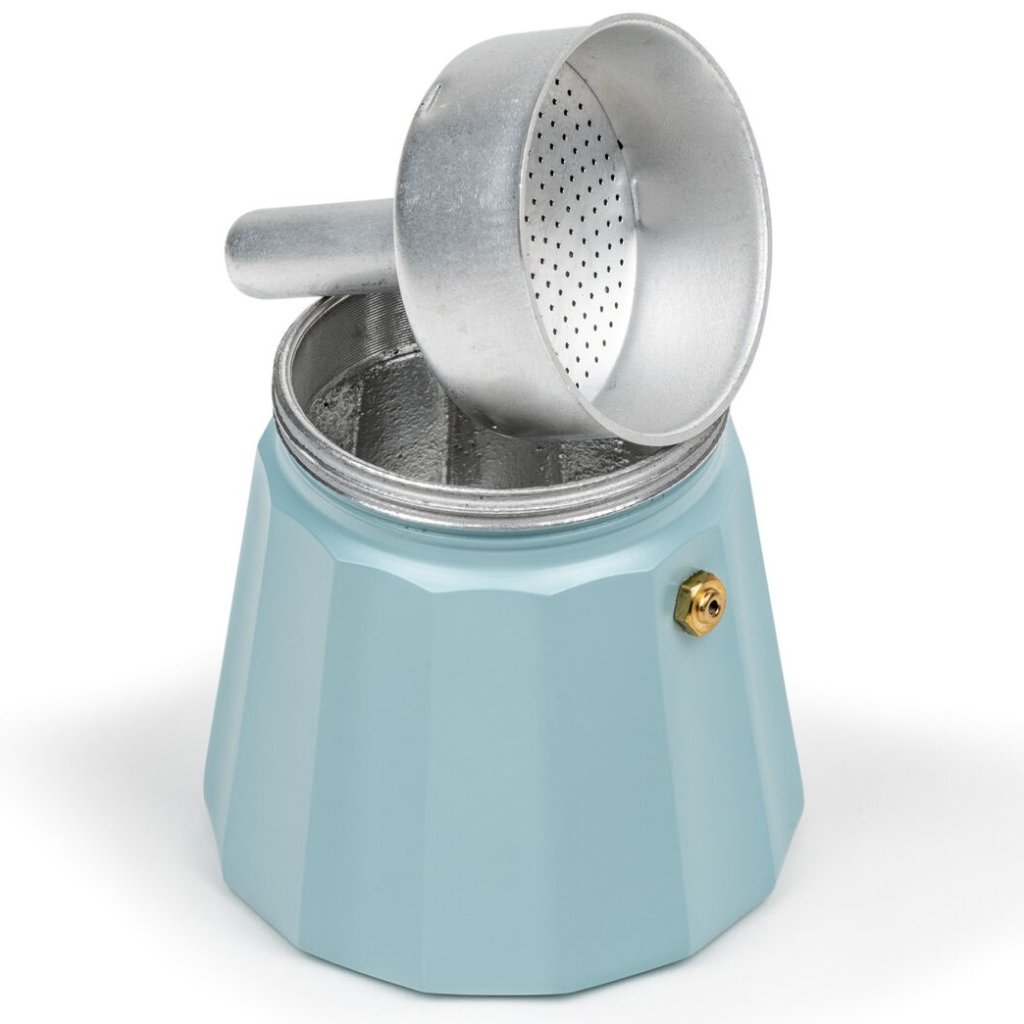 - enostavna uporaba: spodnji del napolnite z vodo, v filter dajte mleto kavo in namestite zgornji del