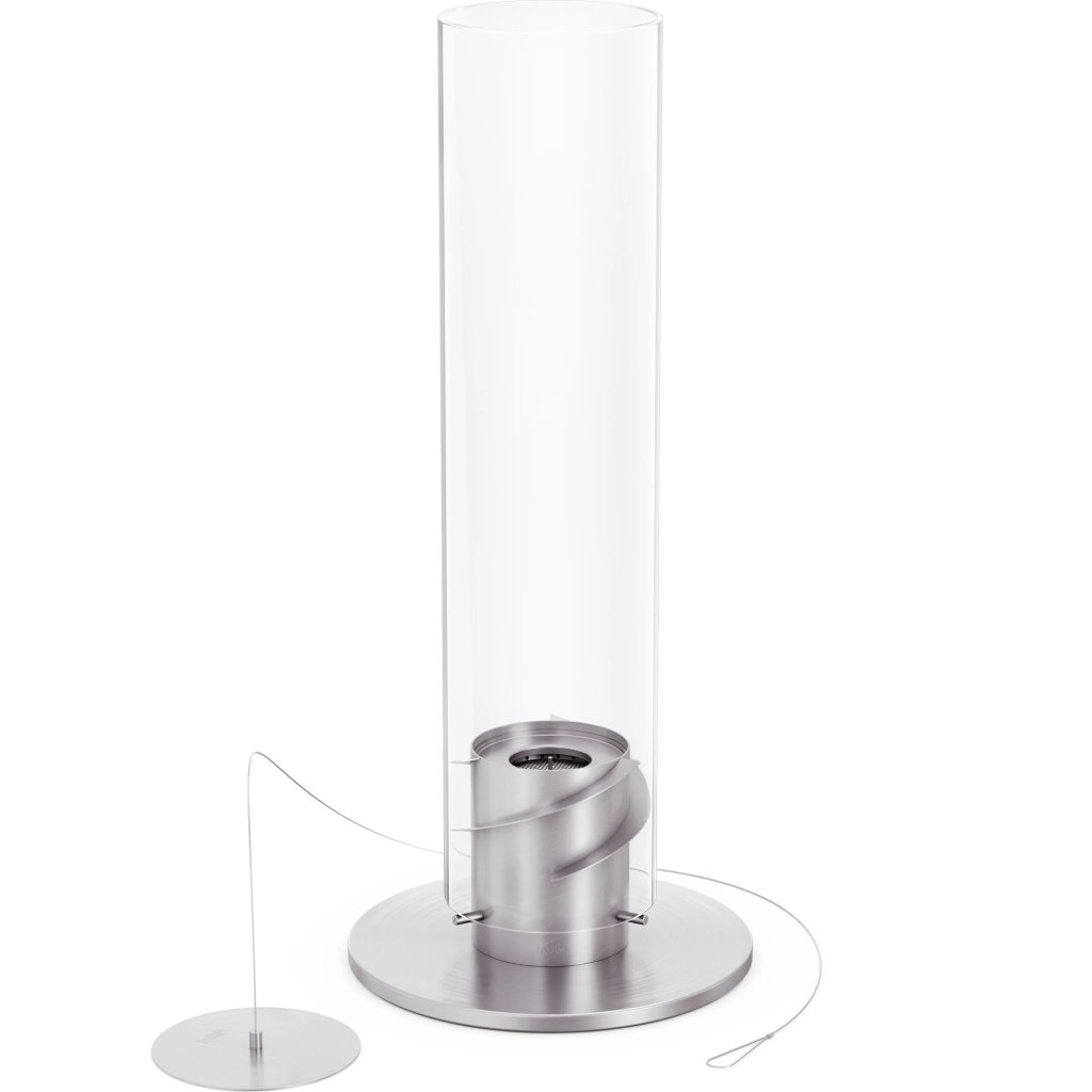 - stekleni valj ščiti plamen pred vetrom in služi tudi kot varnostna pregrada, zato je uporaba kamina varna tudi v prisotnosti otrok ali hišnih ljubljenčkov