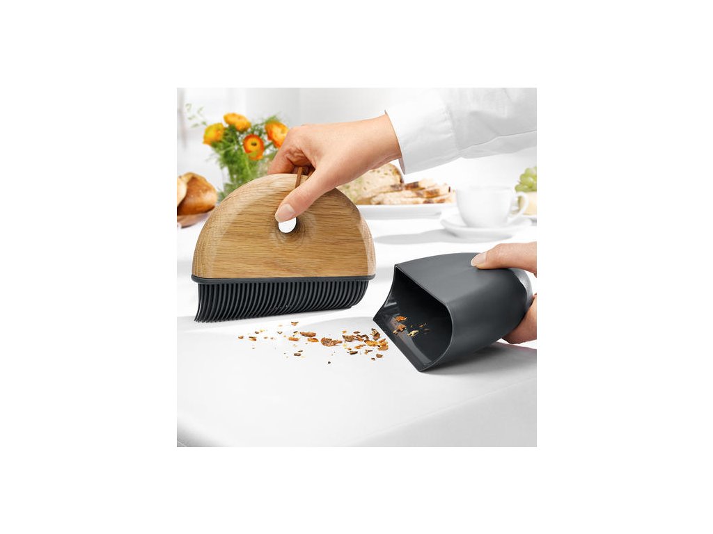 Pri vsakodnevni uporabi kuhinje se zgodi, da se kaj razlije, zdrobi. Zaradi svoje velikosti in praktične embalaže je ta priročni kuhinjski pomočnik Eva Solo lahko obešen ali shranjen v predalu in vedno pri roki. Ščetine ščetke so izdelane iz silikona, ročaj pa iz hrastovega lesa. Rezilo je izdelano iz plastike, zato ga je enostavno vzdrževati. V ročaju je praktična luknja za obešanje z dodatno usnjeno vrvico, na katero lahko obesite komplet.