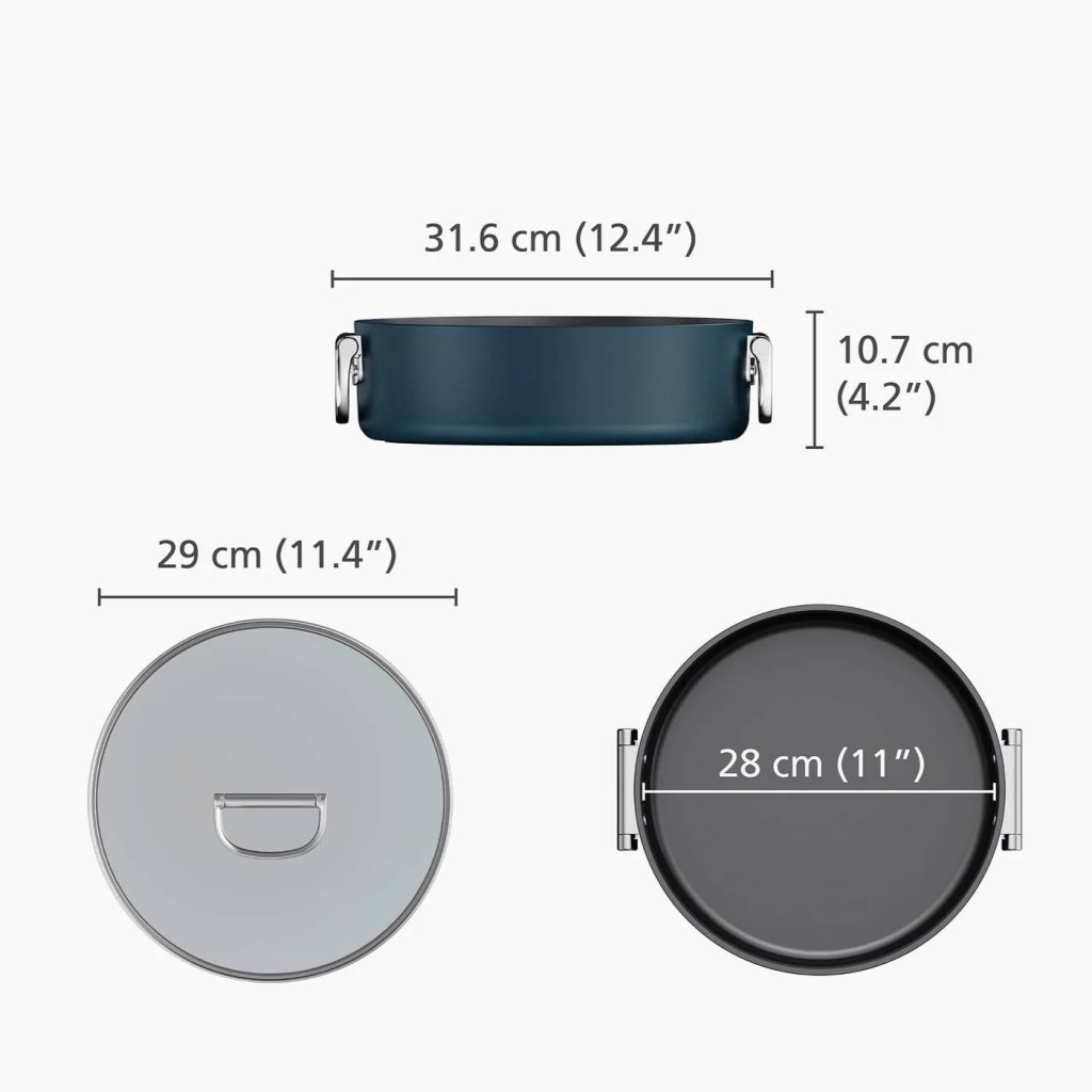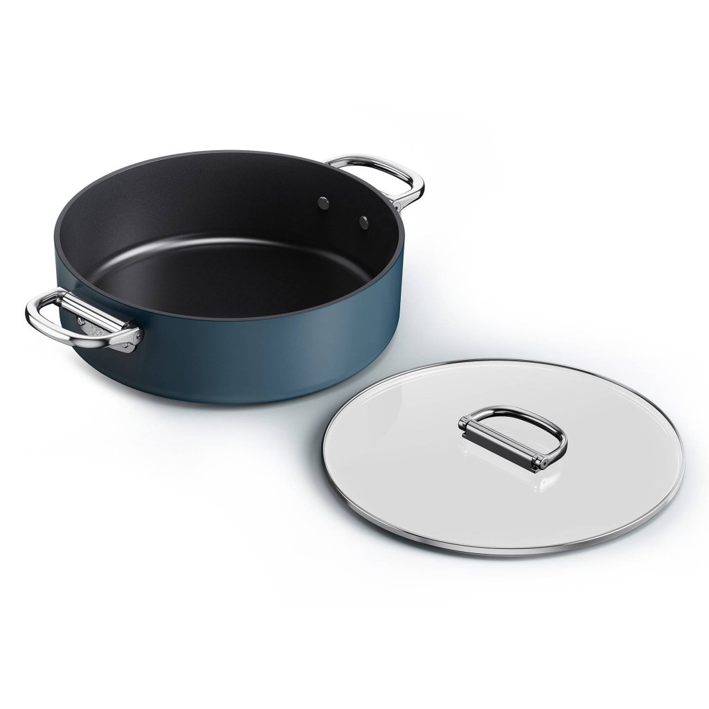 - Nizek lonec za enolončnice SPACE s premerom 28 cm in pokrovko je idealen za pripravo jedi iz ene posode, počasno kuhanje, dušenje in peko.