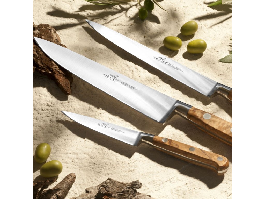 - zaradi naravnega vzorca oljčnega lesa je vsak nož izviren in estetski dodatek v kuhinji
