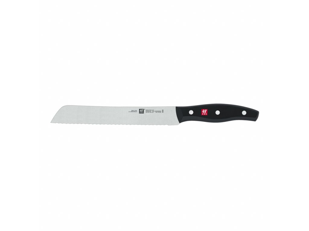 Serija kuhinjskih nožev Twin Pollux podjetja Zwilling je bila zasnovana in izdelana v Solingenu v Nemčiji kot kombinacija natančne izdelave in kakovosti materialov ter zahtev sodobnega oblikovanja in visokega udobja pri uporabi. Medtem ko je jekleno jedro noža izdelano iz enega kosa vrhunskega jedilnega jekla, pa sintetično rezilo zagotavlja popoln ergonomski oprijem. Lepljenje materialov je tako tesno, da izpolnjuje stroge higienske zahteve - ni spojev, v katerih bi se zadrževale bakterije. V seriji Twin Pollux najdete tudi ta nazobčani nož za kruh.