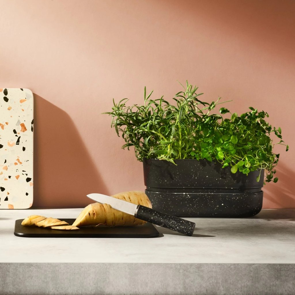 - zaradi majhnega, trdnega rezila iz nerjavečega jekla je idealen za podrobno obdelavo zelenjave, sadja in manjših sestavin